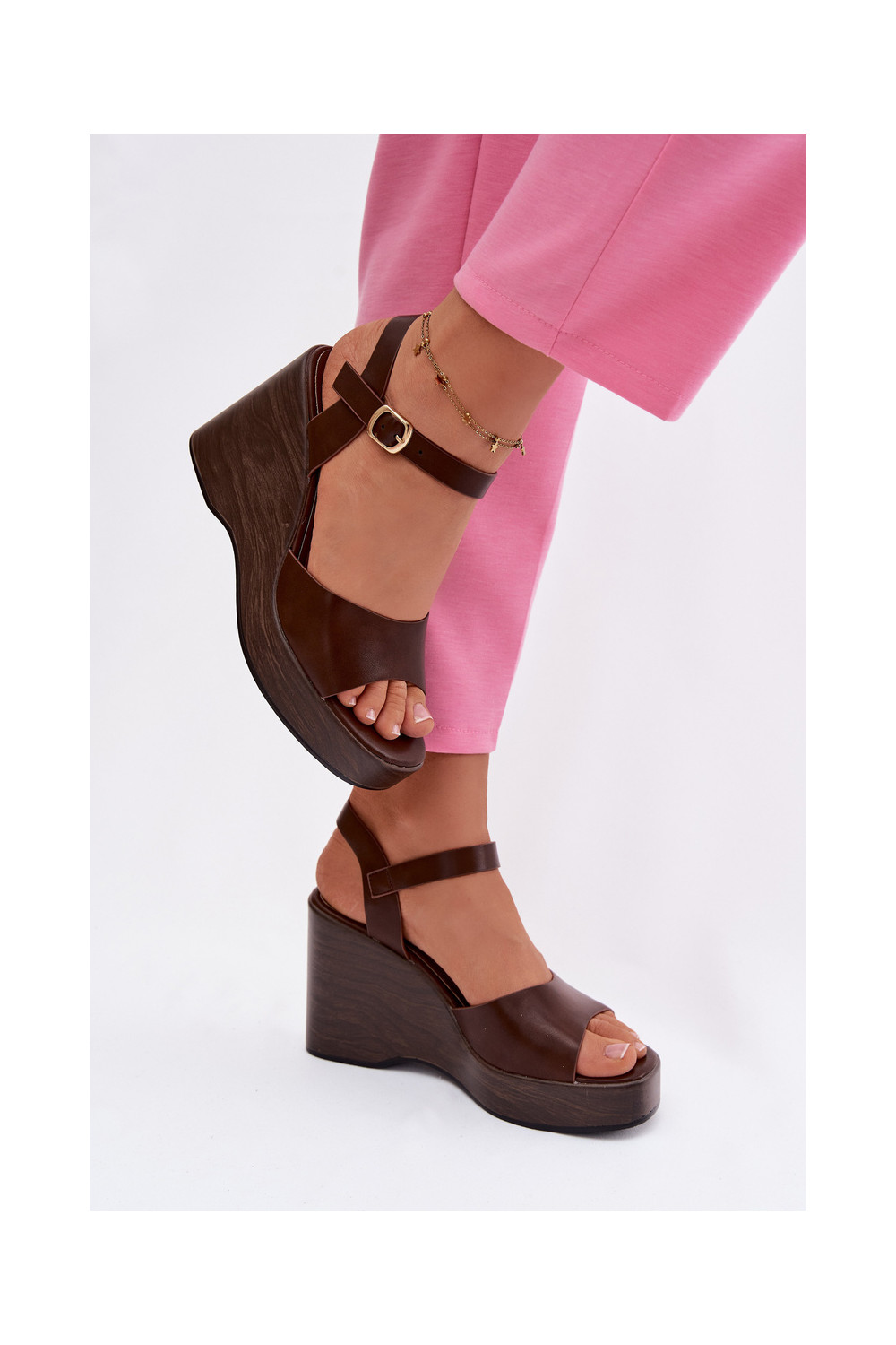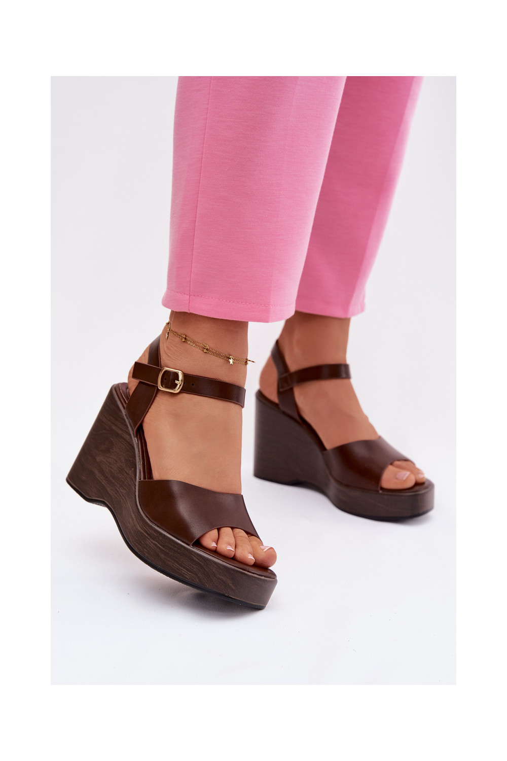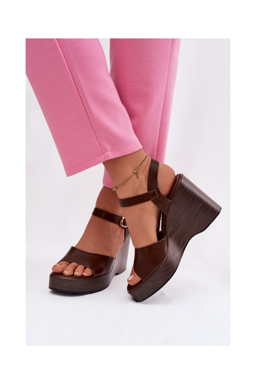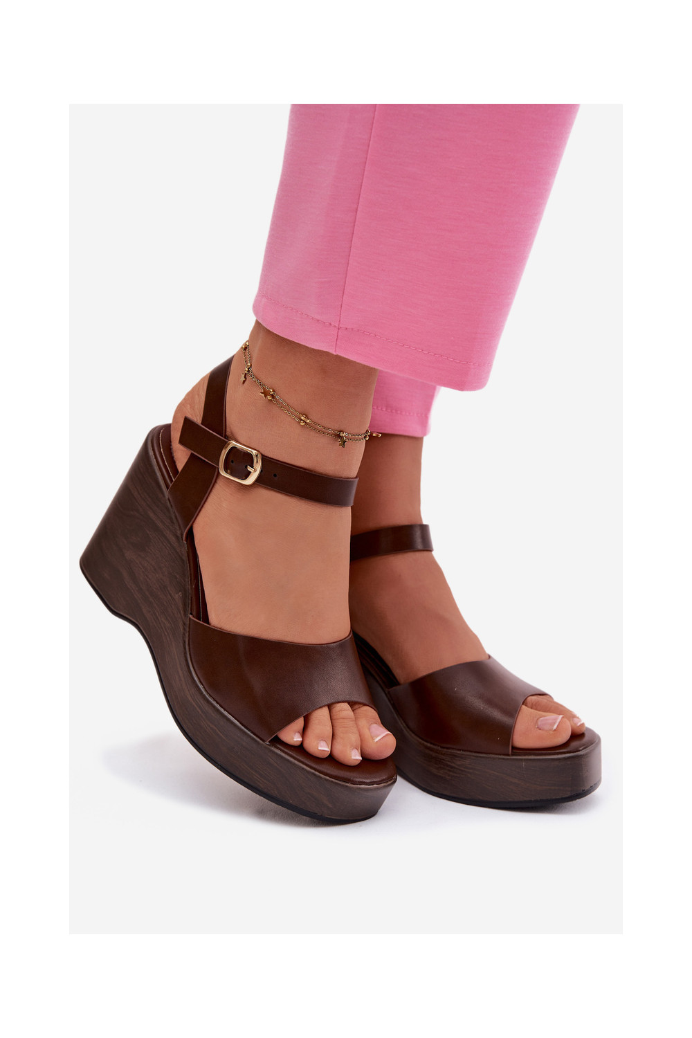 Sieviešu sandaļi uz platformas no mākslīgās ādas, šokolādes krāsas Parilisse
