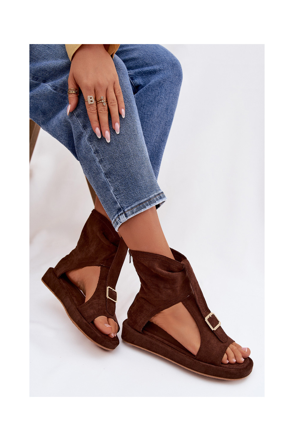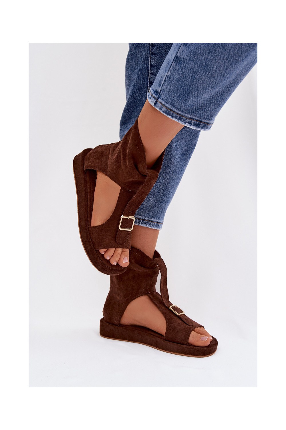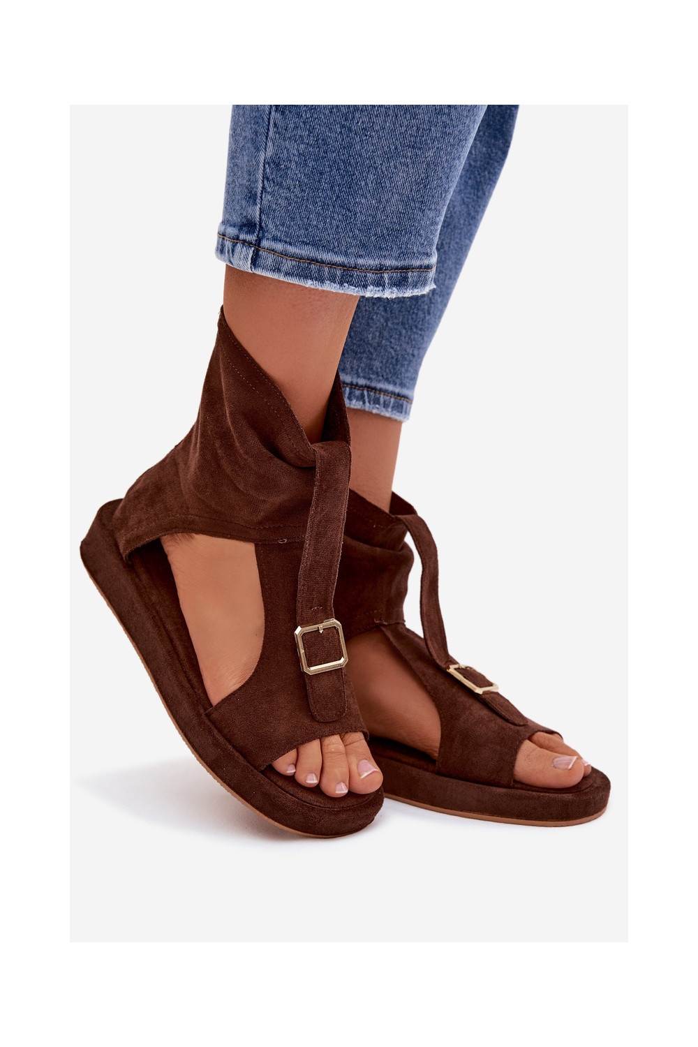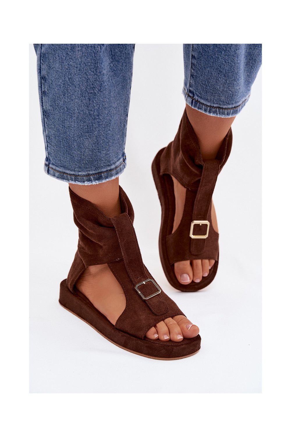 Sieviešu šokolādes krāsas sandales ar zābaku Coralya