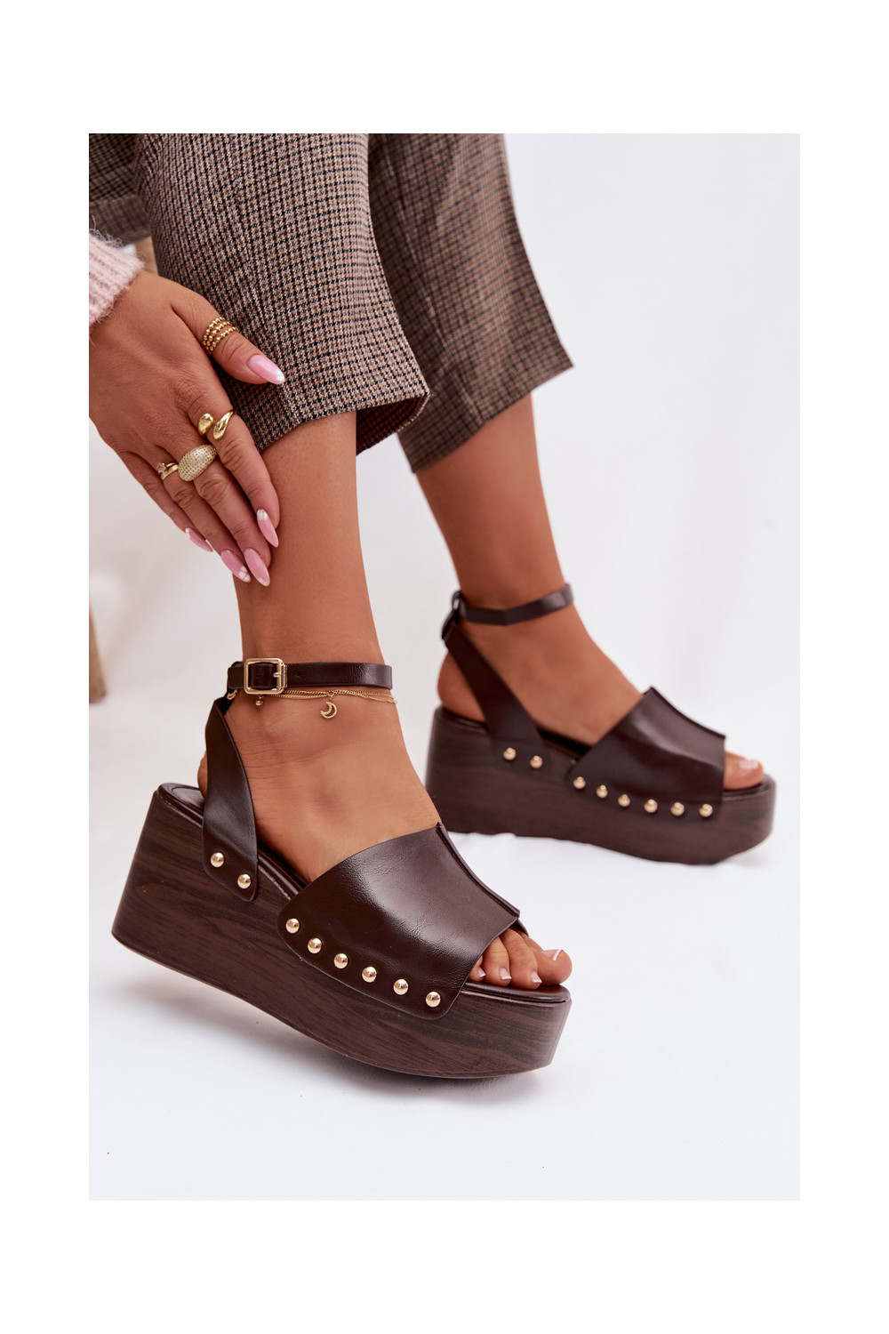 Sieviešu basenes Uz Ķīļa Ze Zelta krāsasmi Kniedes CzekoladoIne Galorina
