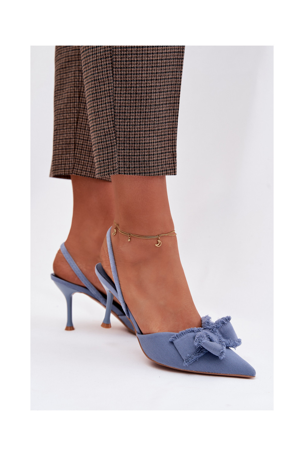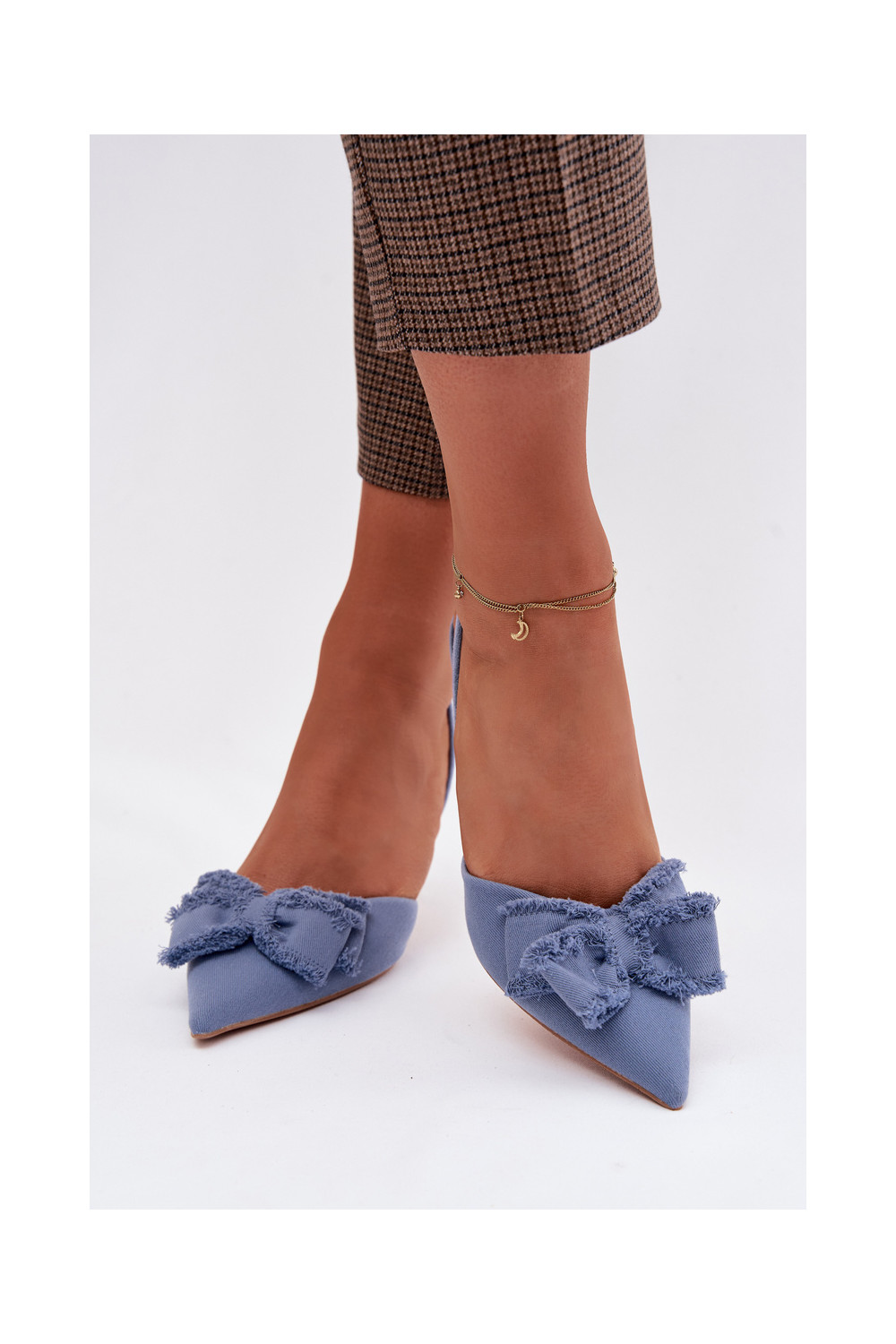 Sieviešu basenes ar papēdi ar bantītēm Zilas krāsas Hestia