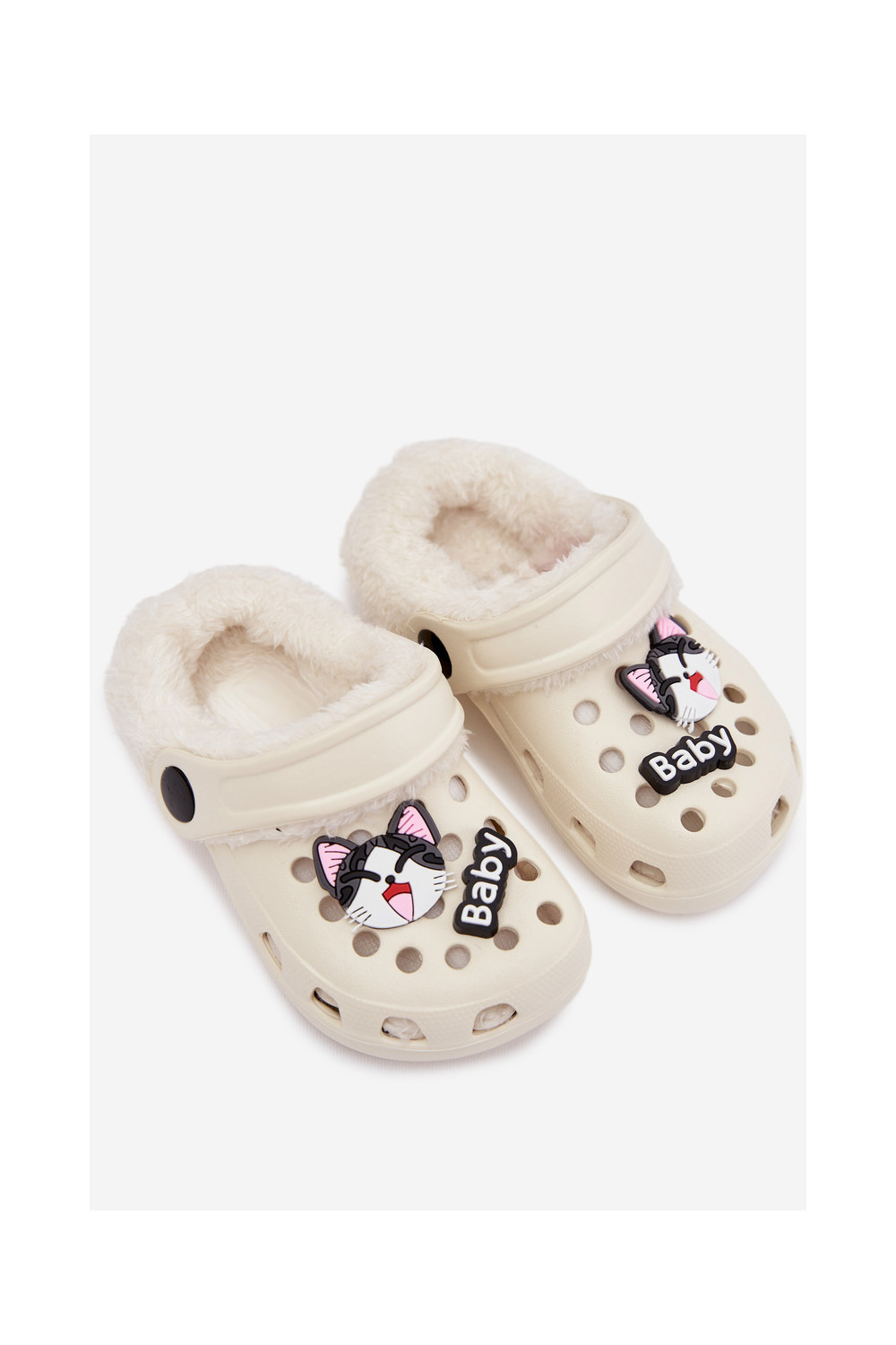 Vieglas čības uz pirksta Čības Bērnu apavi siltināti ar kažokādu Z Przypinkami ziloņkaula krāsas Cerelle