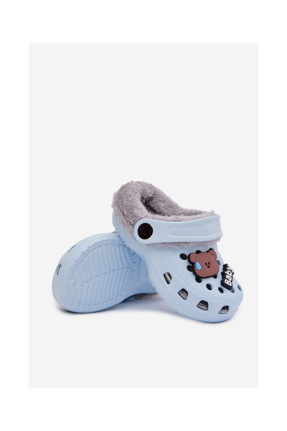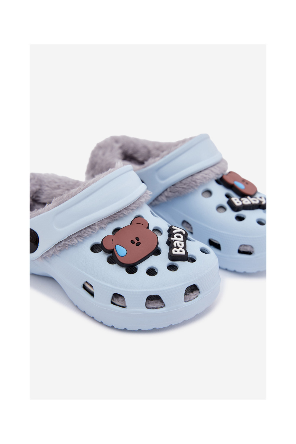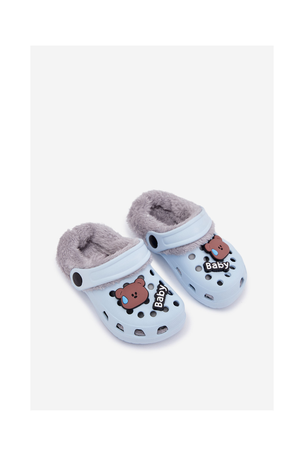 Vieglas čības uz pirksta Čības Bērnu apavi siltināti ar kažokāduPrzypinkami gaiši zilas krāsas Cerelle