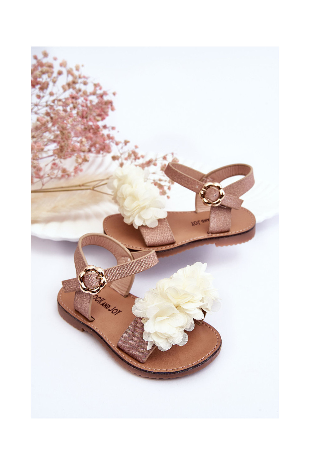 Stilīgasrnas Bērnu apavi ar puķītēm smilšu krāsas-Zelta krāsas Poly