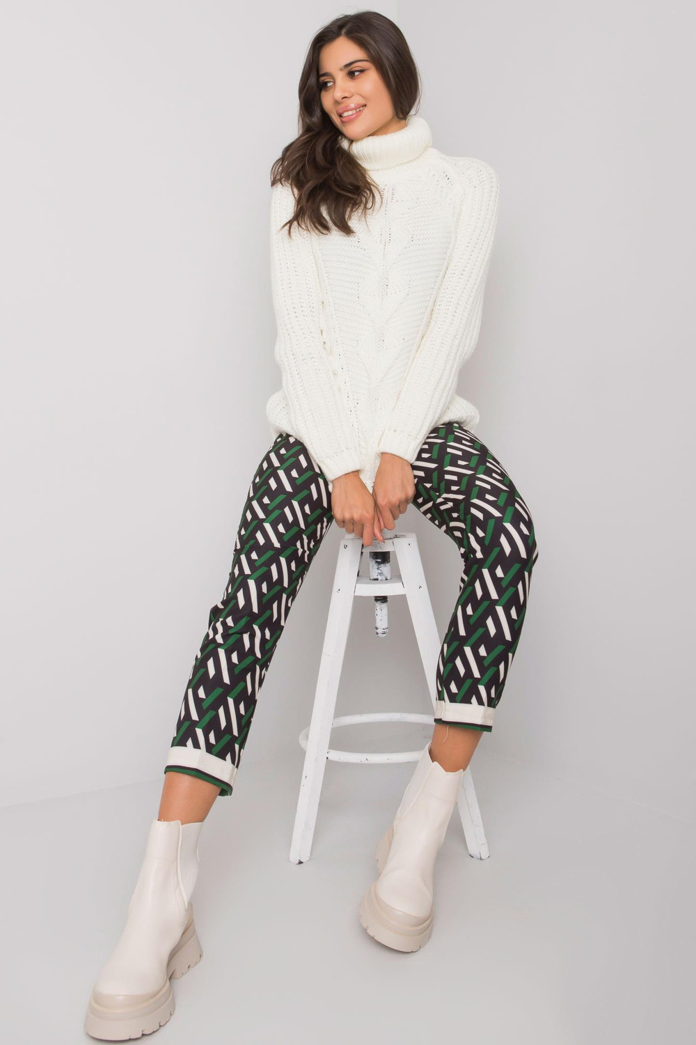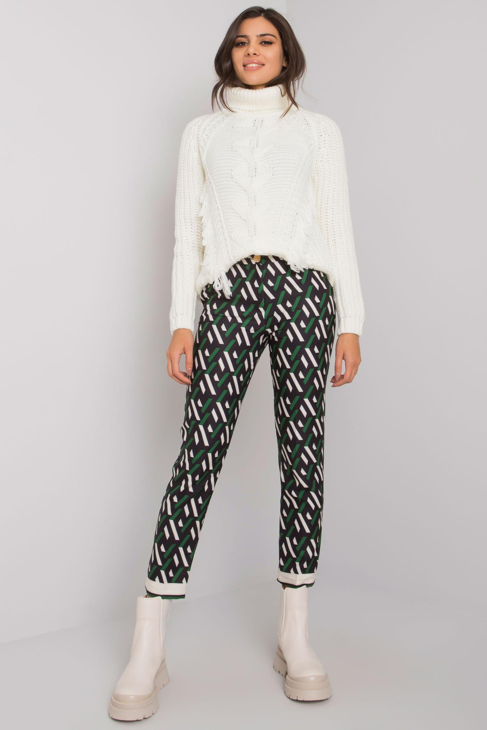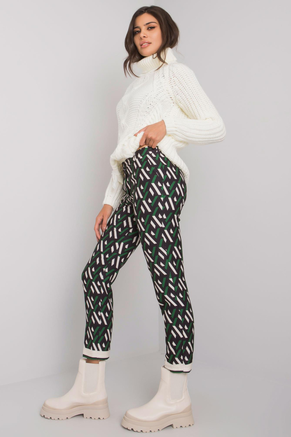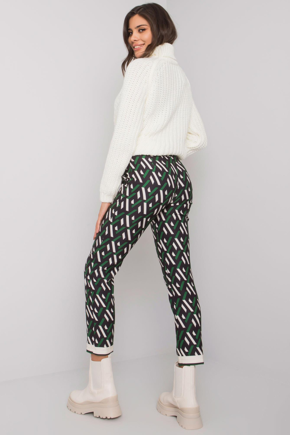 Melnas un zaļas bikses ar Dorčesteras rakstiem . Materiālssastāvs: poliestera mazgāšanas metode: veļas mašīna 30°C Modelis valkā 36.izmēru. Modeļa izmēri: augums 176 cm, krūtis 86 cm, viduklis 60 cm, gurni 88 cm. Bikšu izmēri izmērā