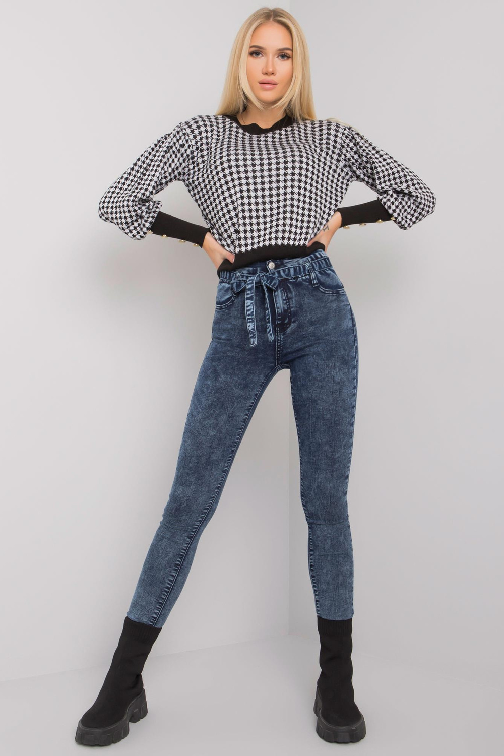 Zilas krāsas džinsi ar Lexington iesējumu.