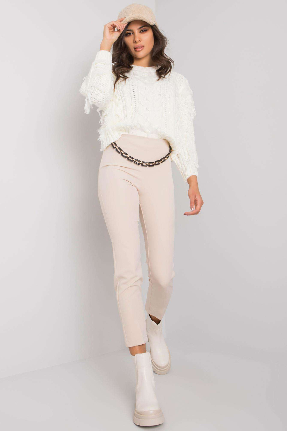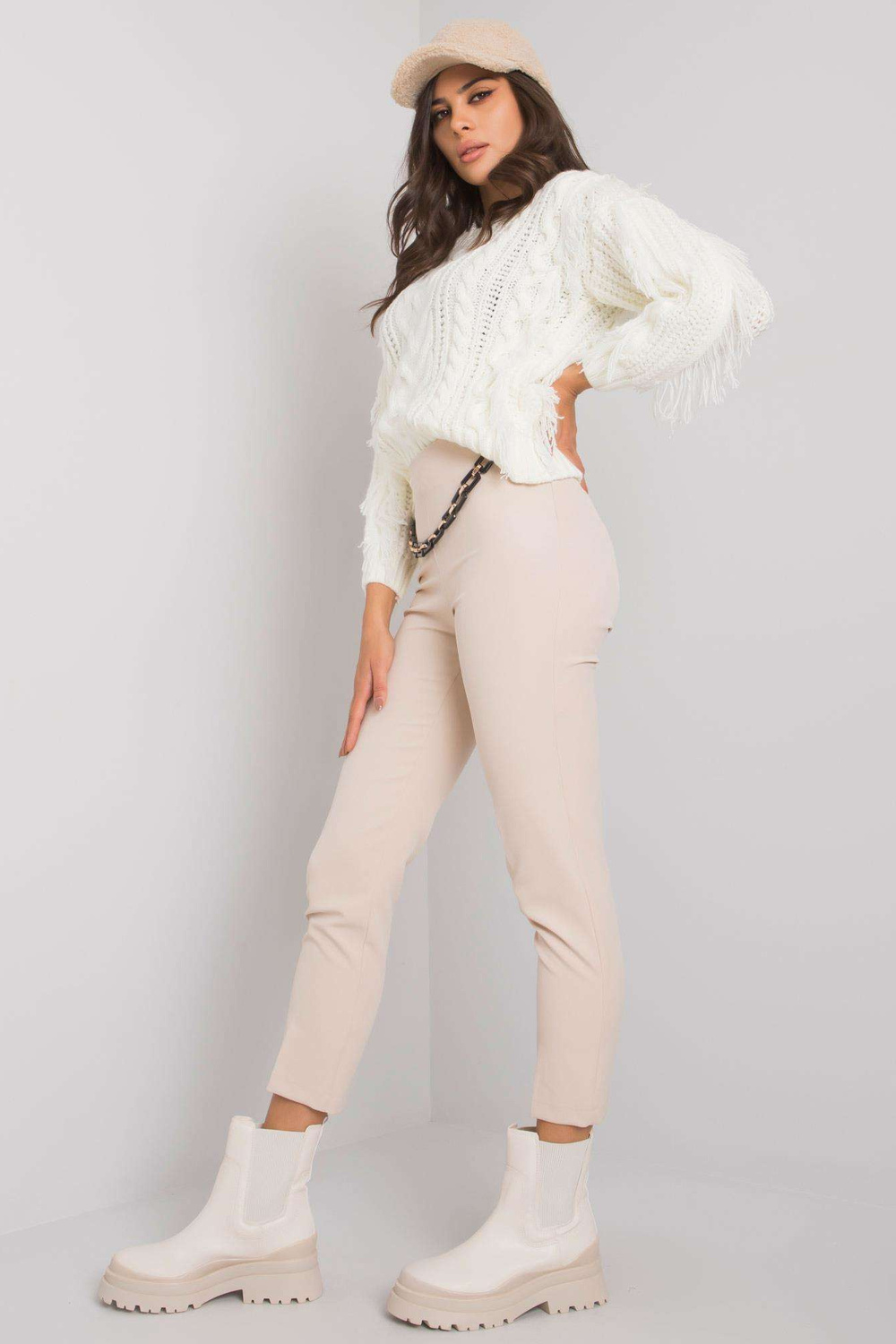 36. izmēra bikšu izmēri, mērīti plakaniski: platums jostasvietā - 36 cm, kopējais garums - 94 cm, stāvokļa augstums - 27 cm