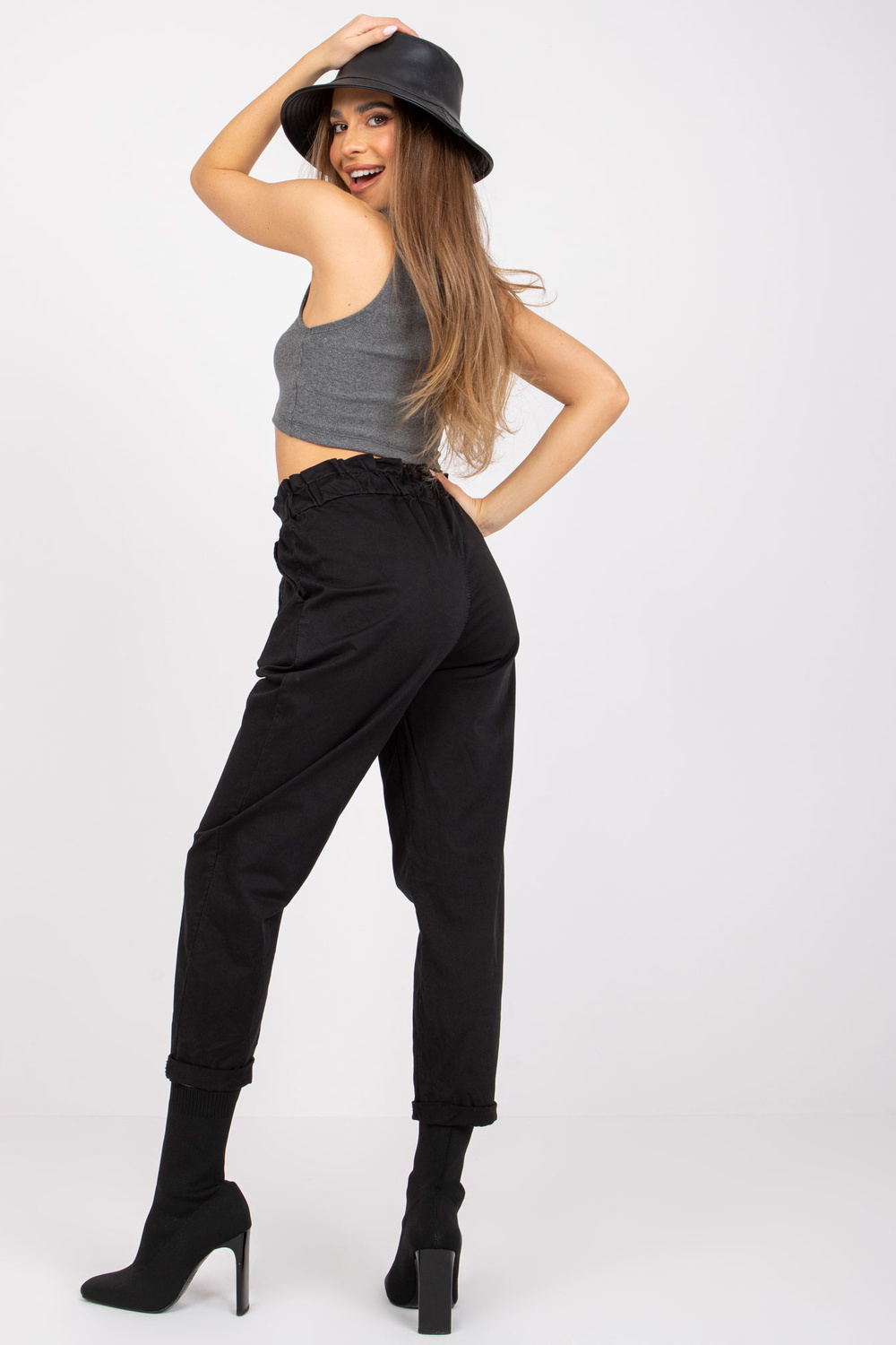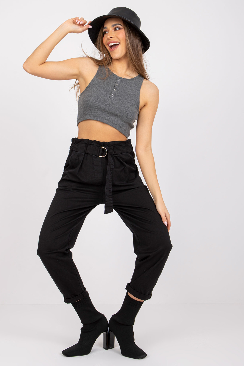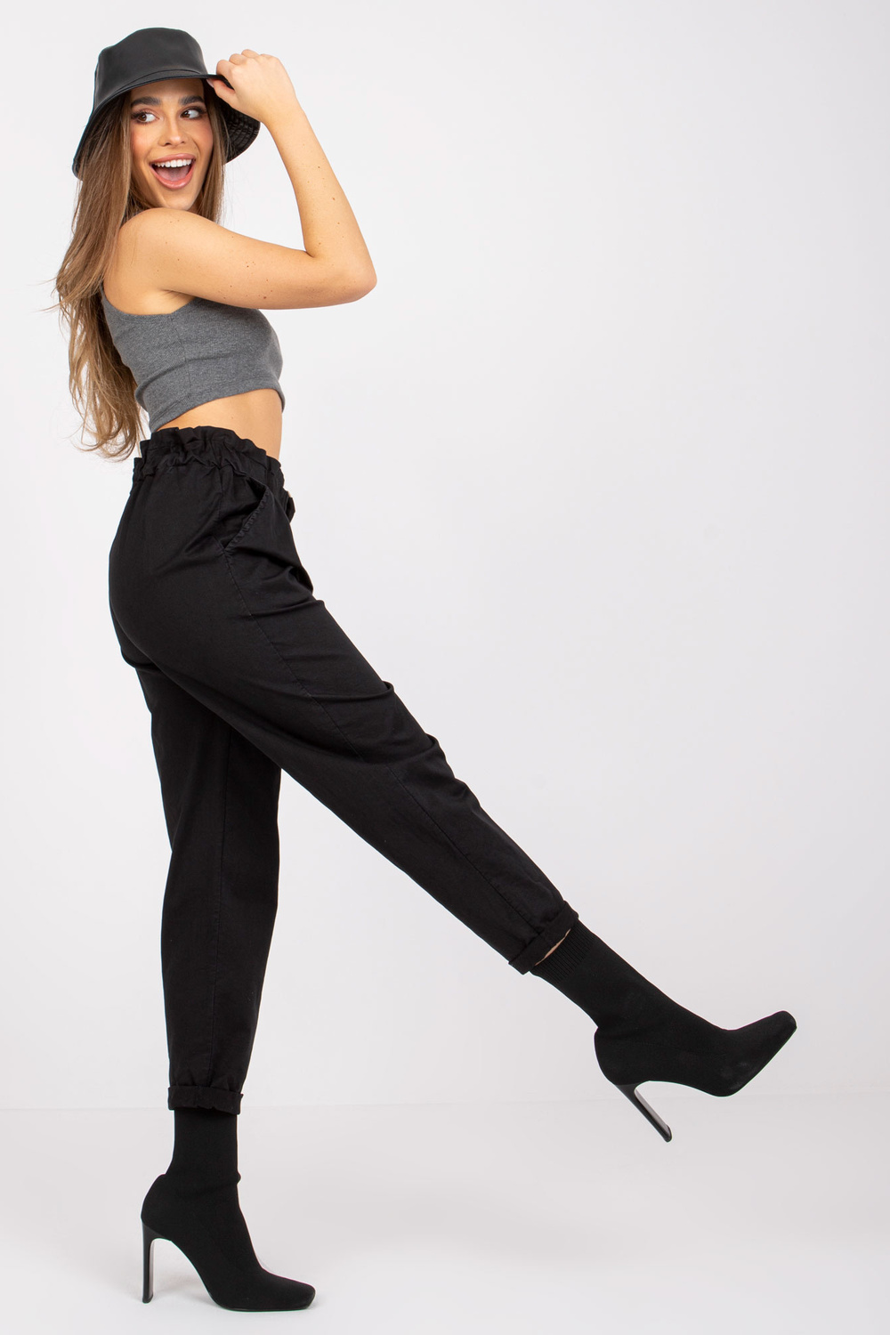 piederumi: elastīga jostasvieta, kabatas, piešūta siksna