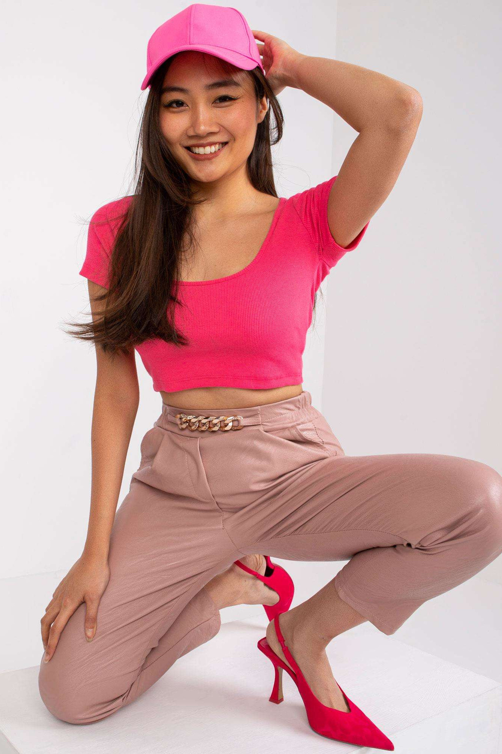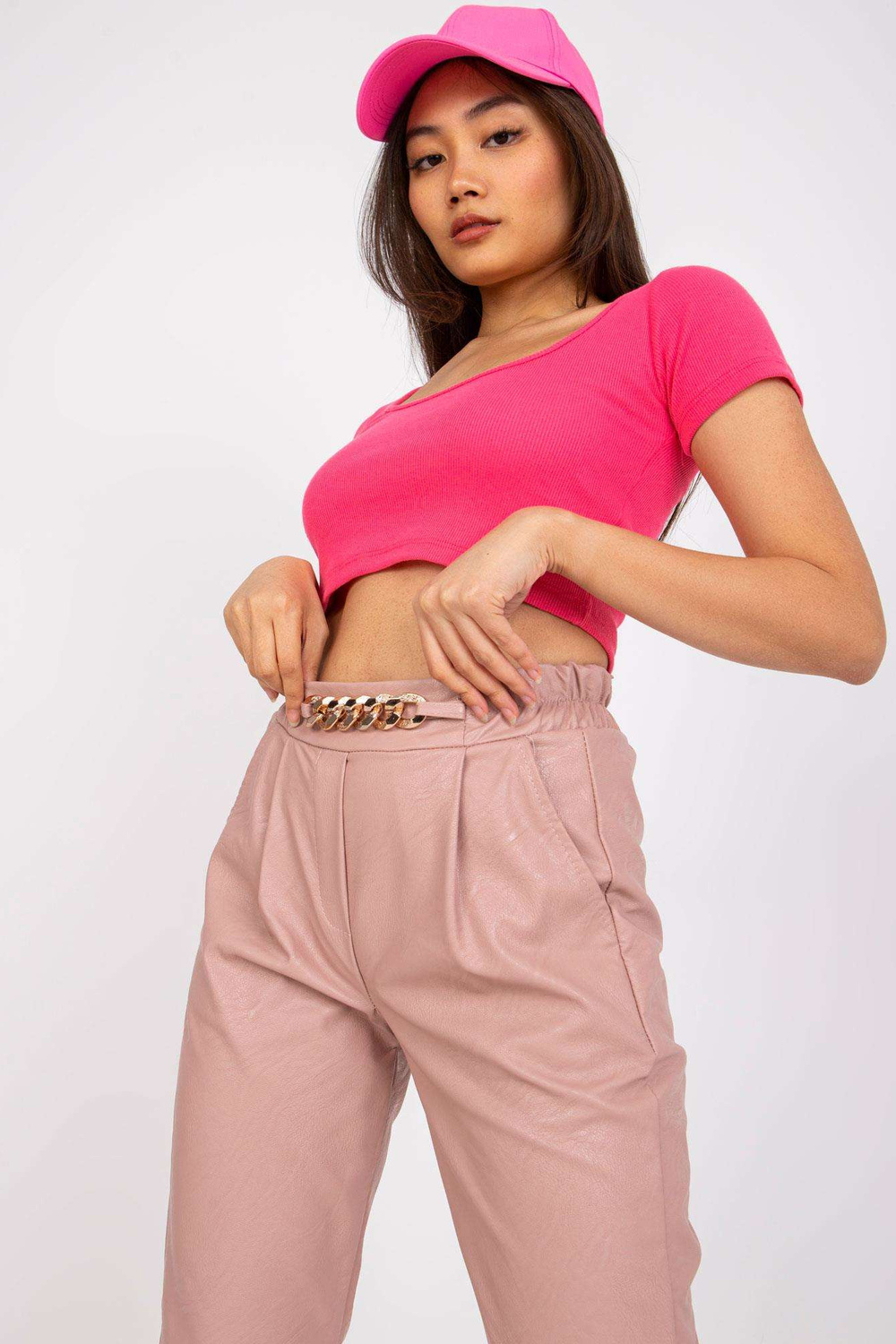 Rozā bikses no Porto ādas.