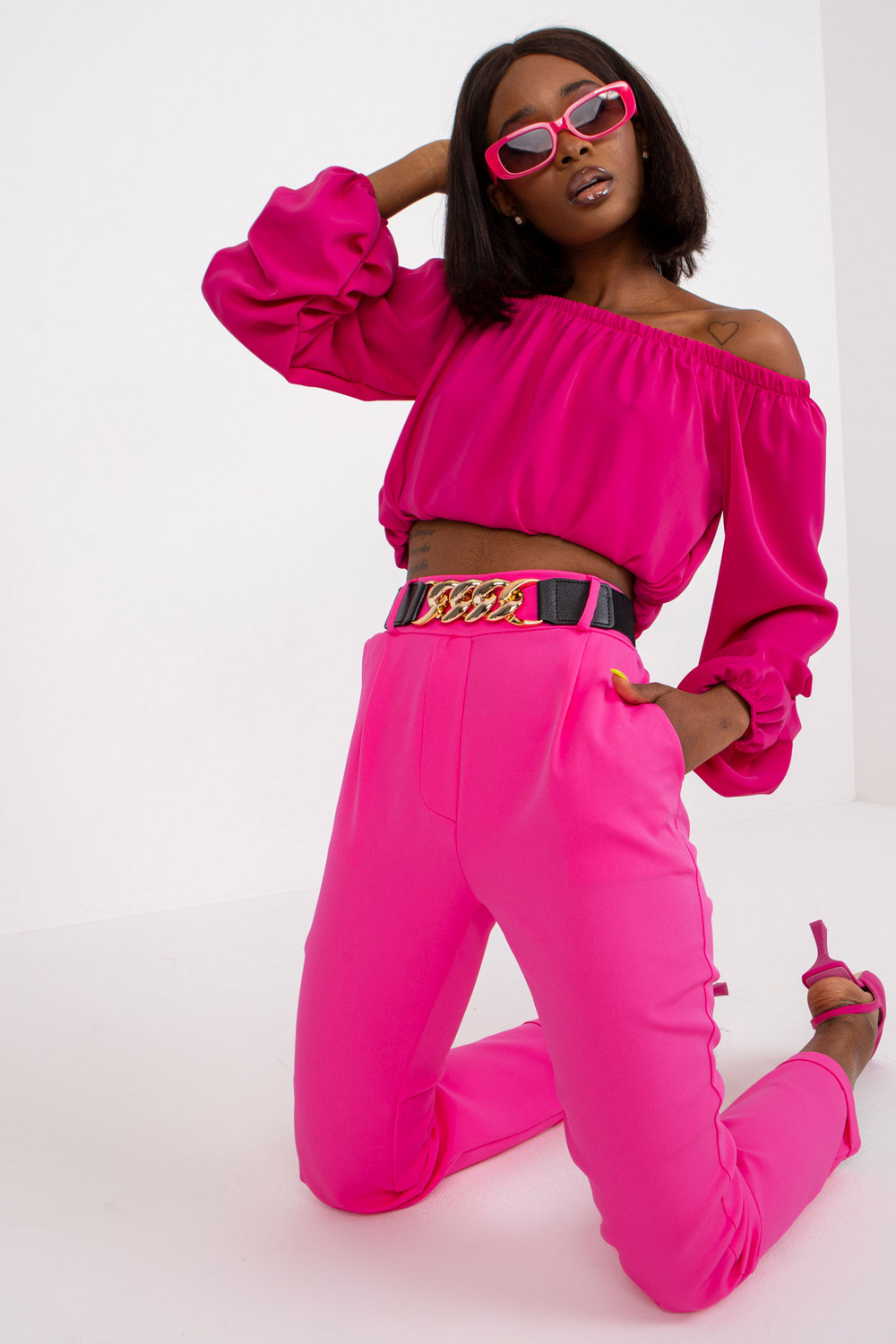 Fluopink taisnas bikses no Seviljas auduma ar augstu jostasvietu.