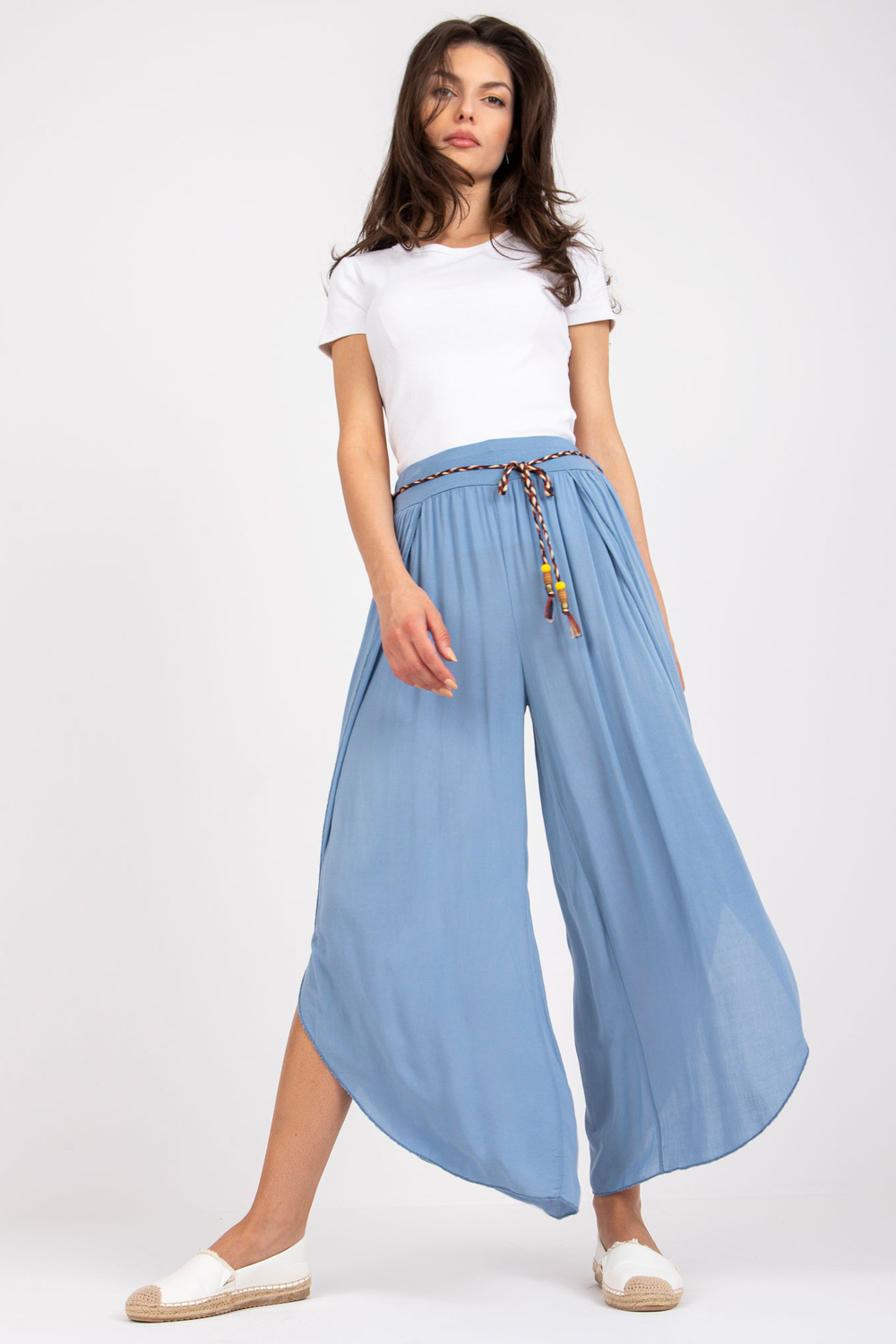 Zilas platas bikses no auduma ar augstu jostasvietu OCH BELLA .