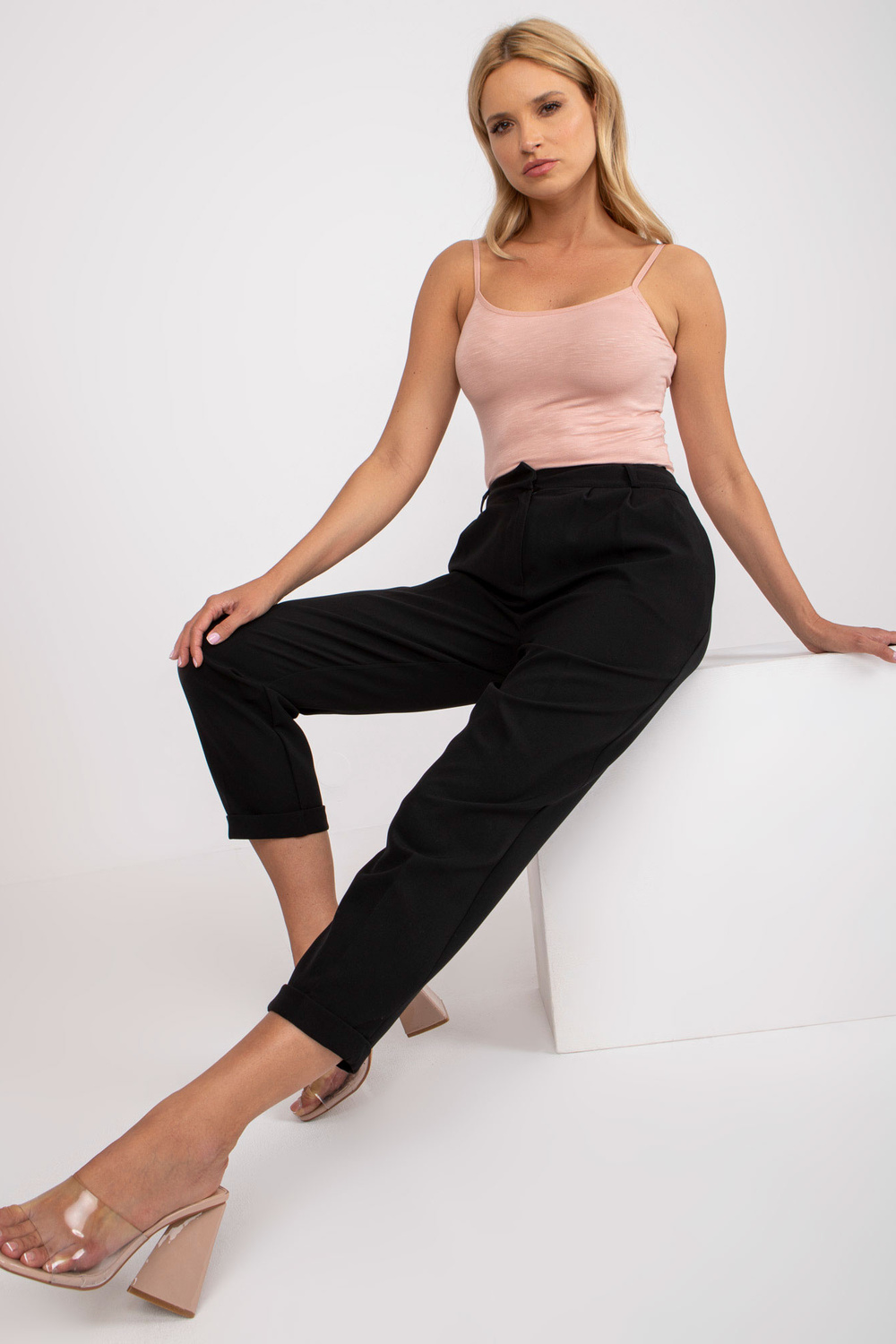 Modele valkā 36. izmēru. Modeļa izmēri: augums 175 cm, krūtis 84 cm, viduklis 65 cm, gurni 92 cm.