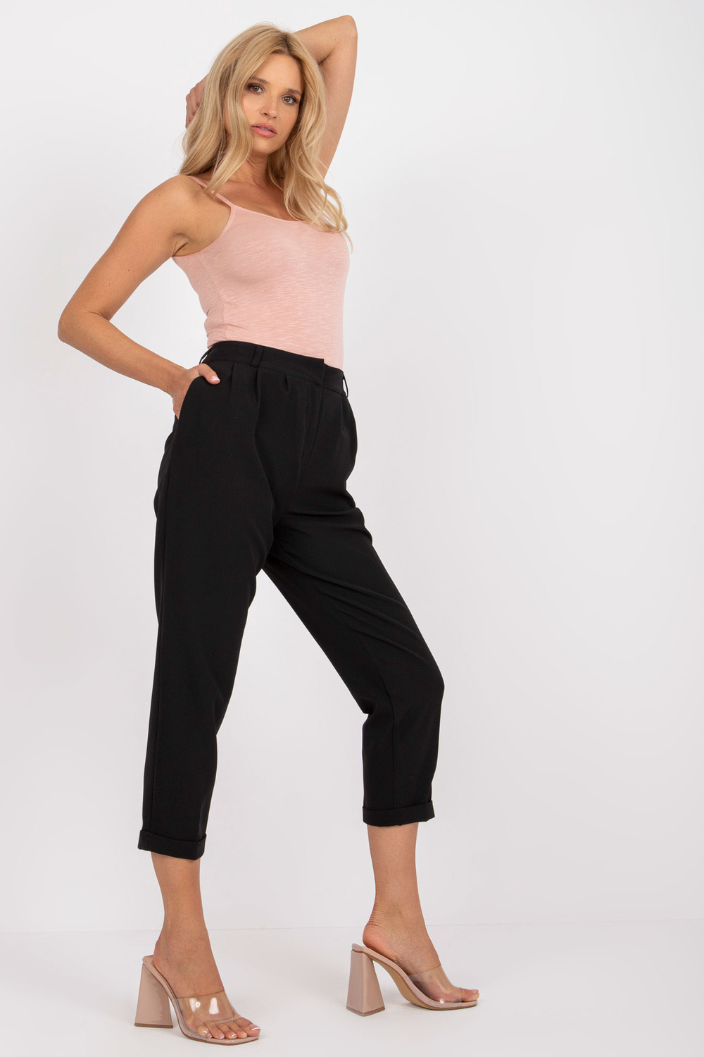 Melnā tērpa bikses ar taisnām kājām RUE PARIS .