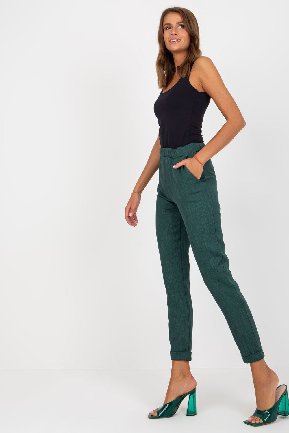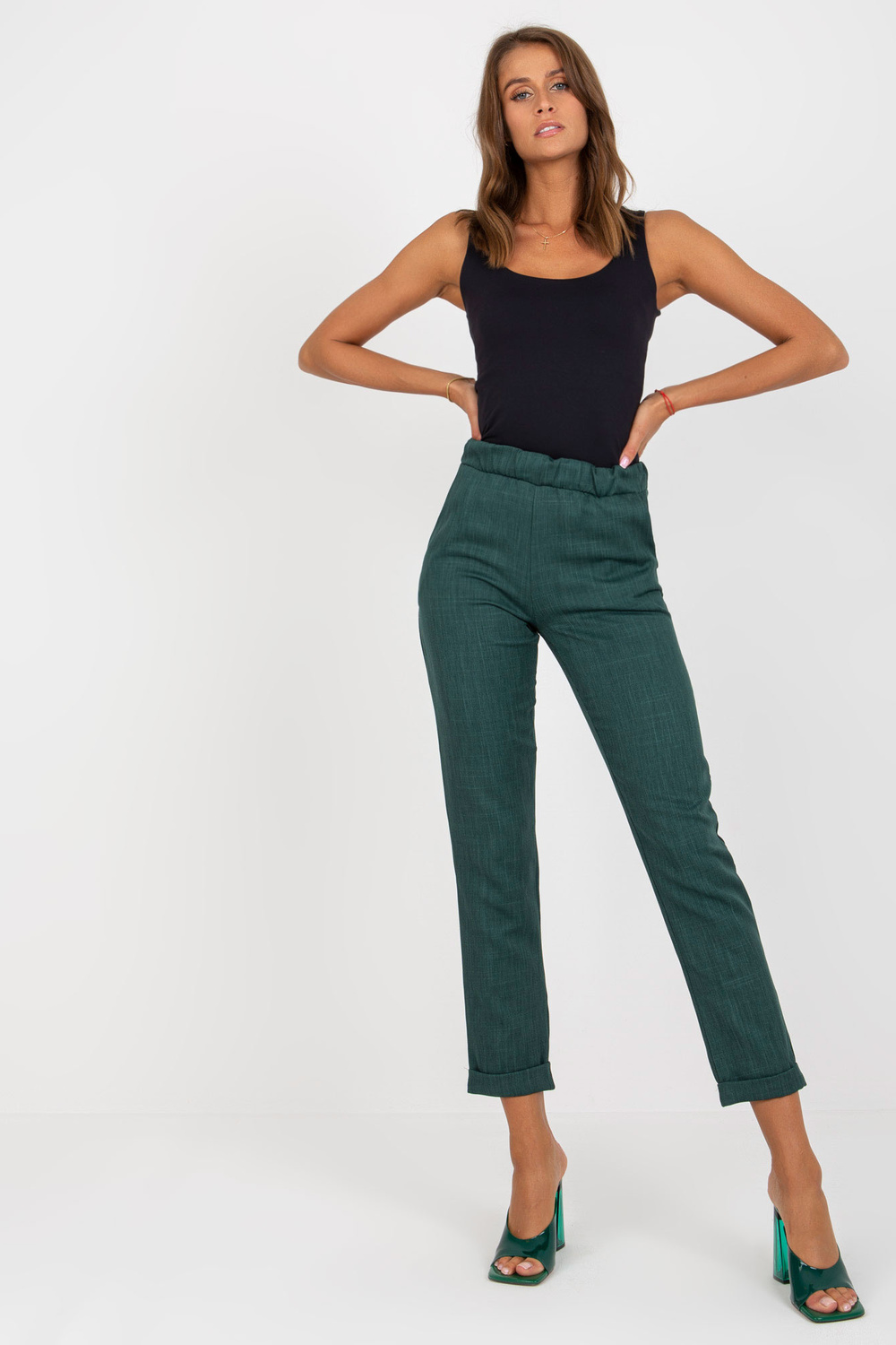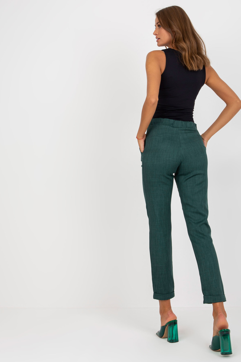 36. izmēra bikšu izmēri mērīti plakaniski: platums jostasvietā - 31 cm, stāvokļa augstums - 28 cm, kopējais garums - 98 cm.
