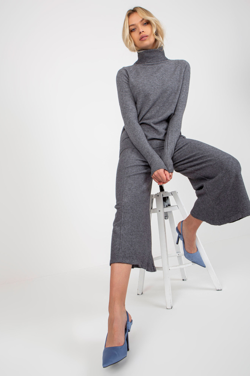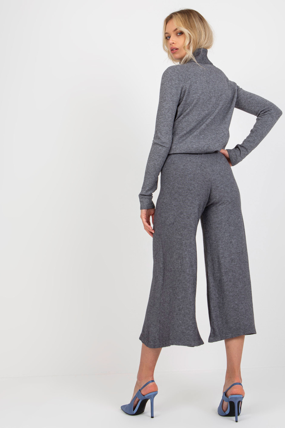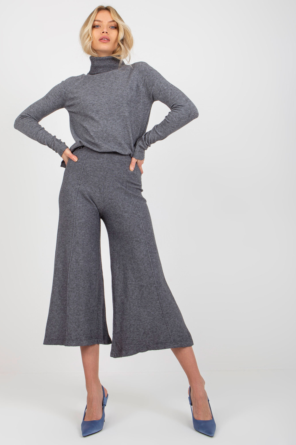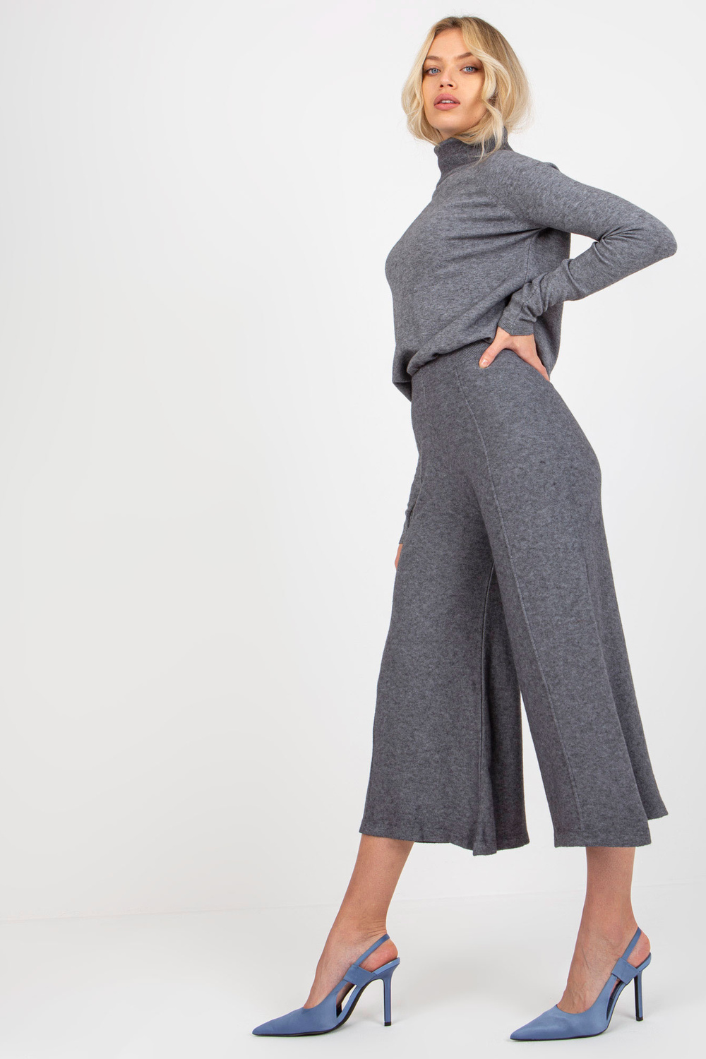 Tumši pelēkas platas trikotāžas bikses ar augstu jostasvietu strong> .