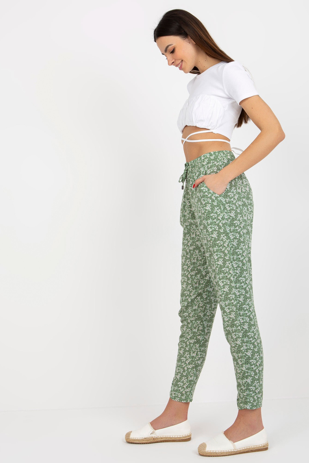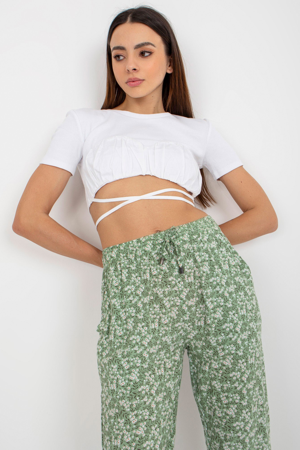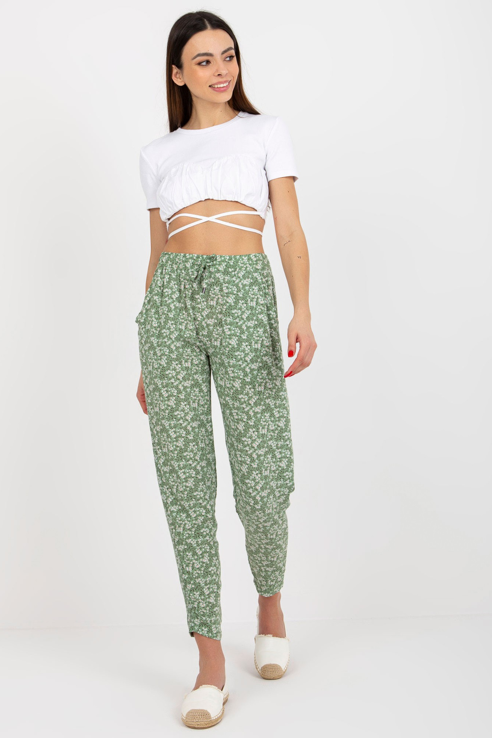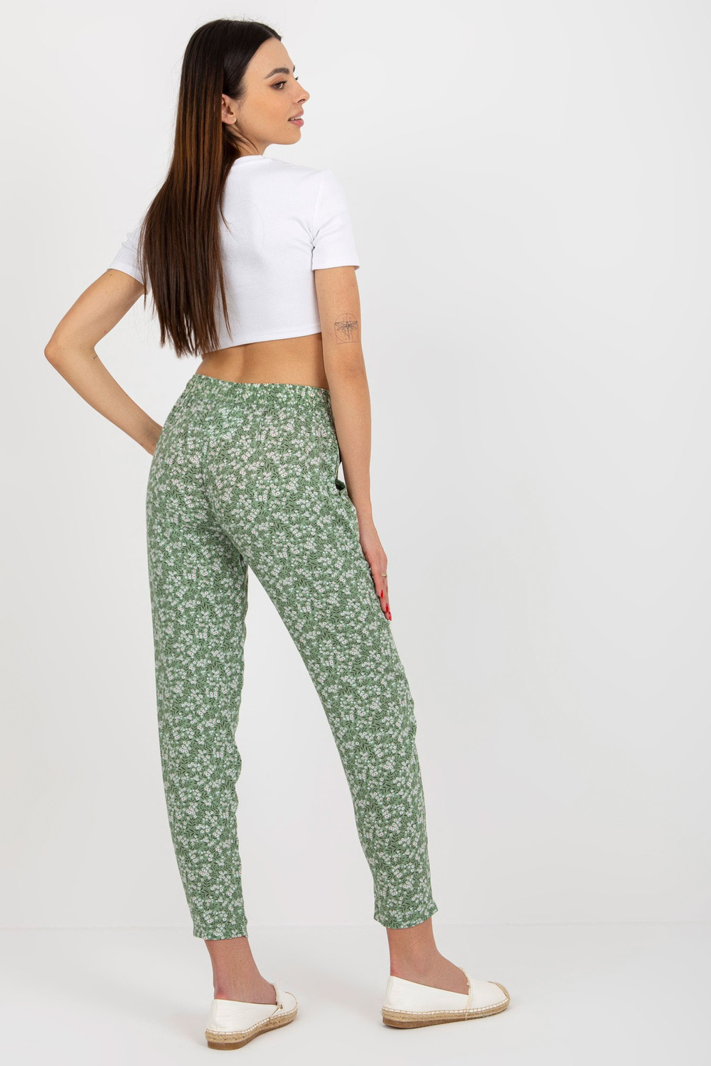 Gaiši zaļas gaišas bikses no ziedu auduma SUBLEVEL
