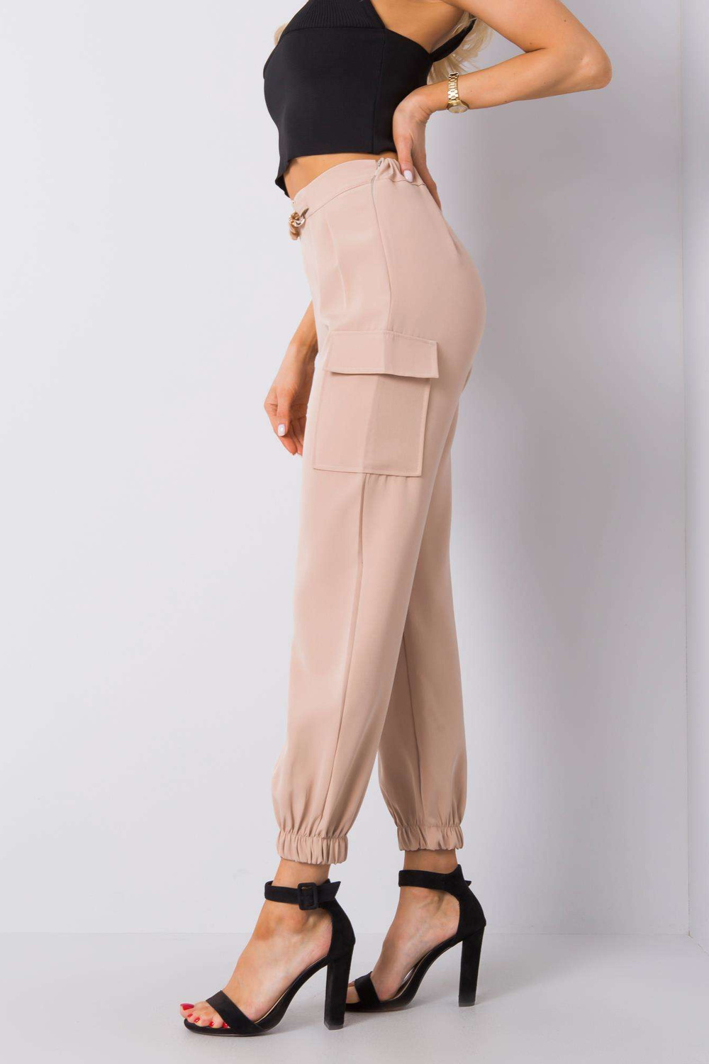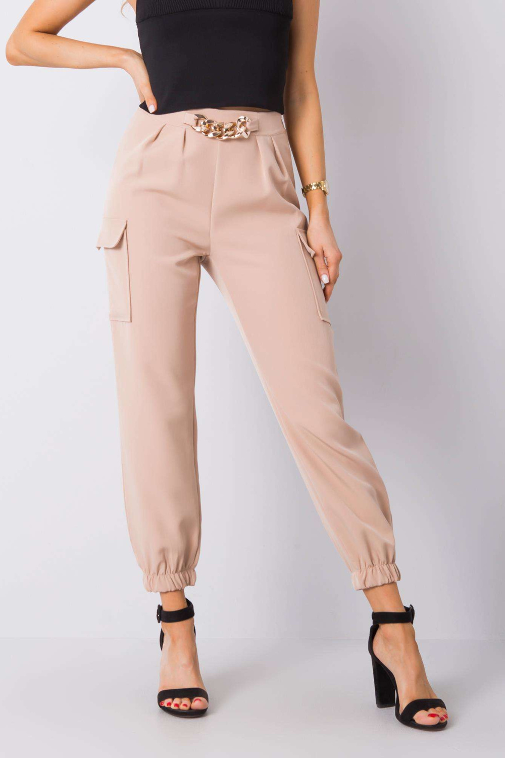 Beigepants Ester OCH BELLA aksesuāri: šūts slīdnes materiālssastāvs: 96% poliesters, 4% elastāns mazgāšanas metode: veļas mašīna 30°C Modelis valkā S izmēru. Modeļa izmēri: augstums 175 cm, krūtis 85 cm, viduklis 63 cm , gurni 95 cm. Izmēri