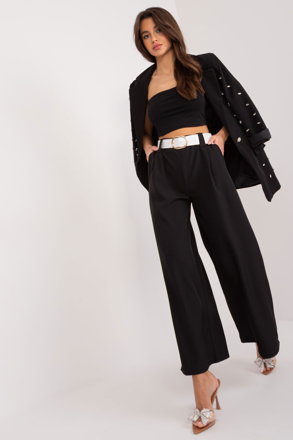 Modele valkā viena izmēra izmēru. Modeļa izmēri: augums 172 cm, krūtis 88 cm, viduklis 63 cm, gurni 92 cm.