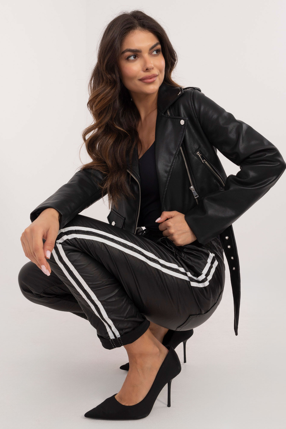 Modele valkā viena izmēra izmēru. Modeļa izmēri: augums 173 cm, krūtis 85 cm, viduklis 62 cm, gurni 95 cm.