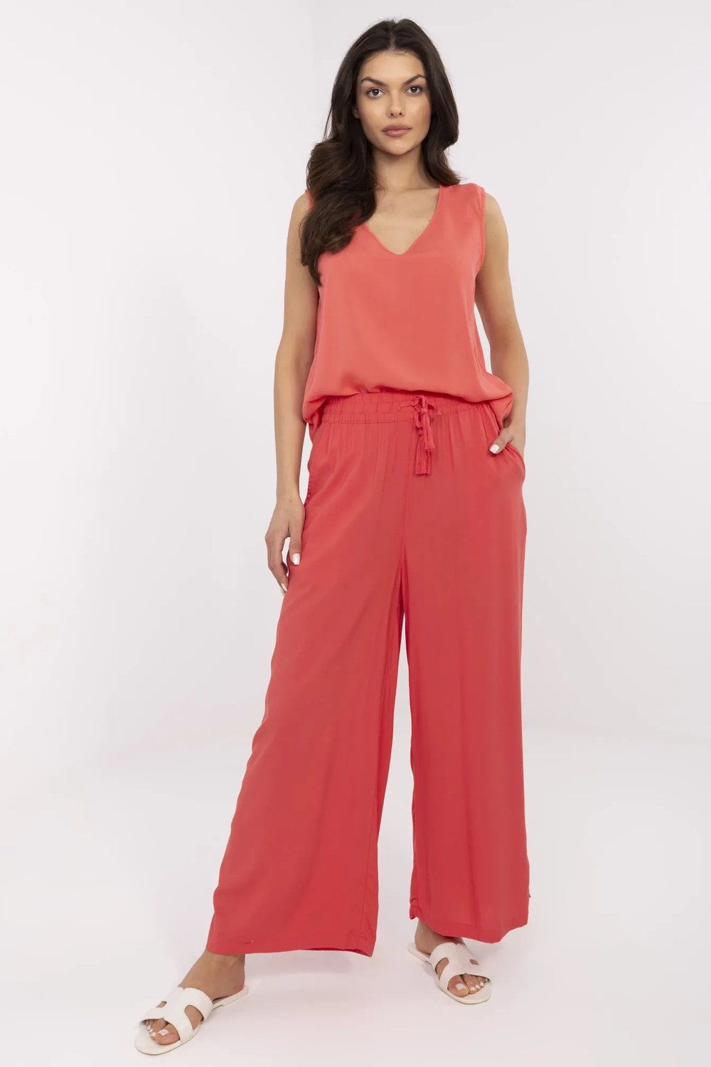 Modele valkā S izmēru. Modeļa izmēri: augums 173 cm, krūtis 89 cm, viduklis 65 cm, gurni 91 cm
