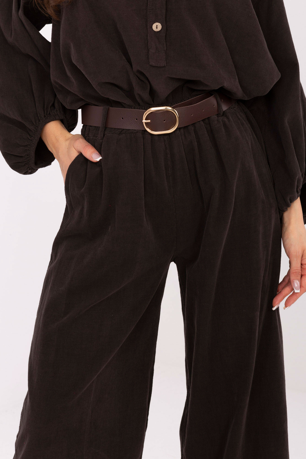 Vienas izmēra biksu izmēri: vidukļa platums - 31 cm (mērīts taisni), vidukļa platums - 53 cm (izstiepts), gurnu platums - 58 cm, bikses garums - 108 cm.