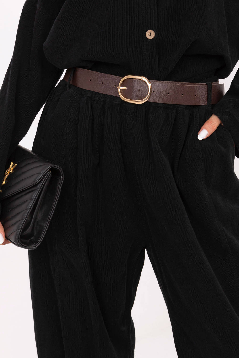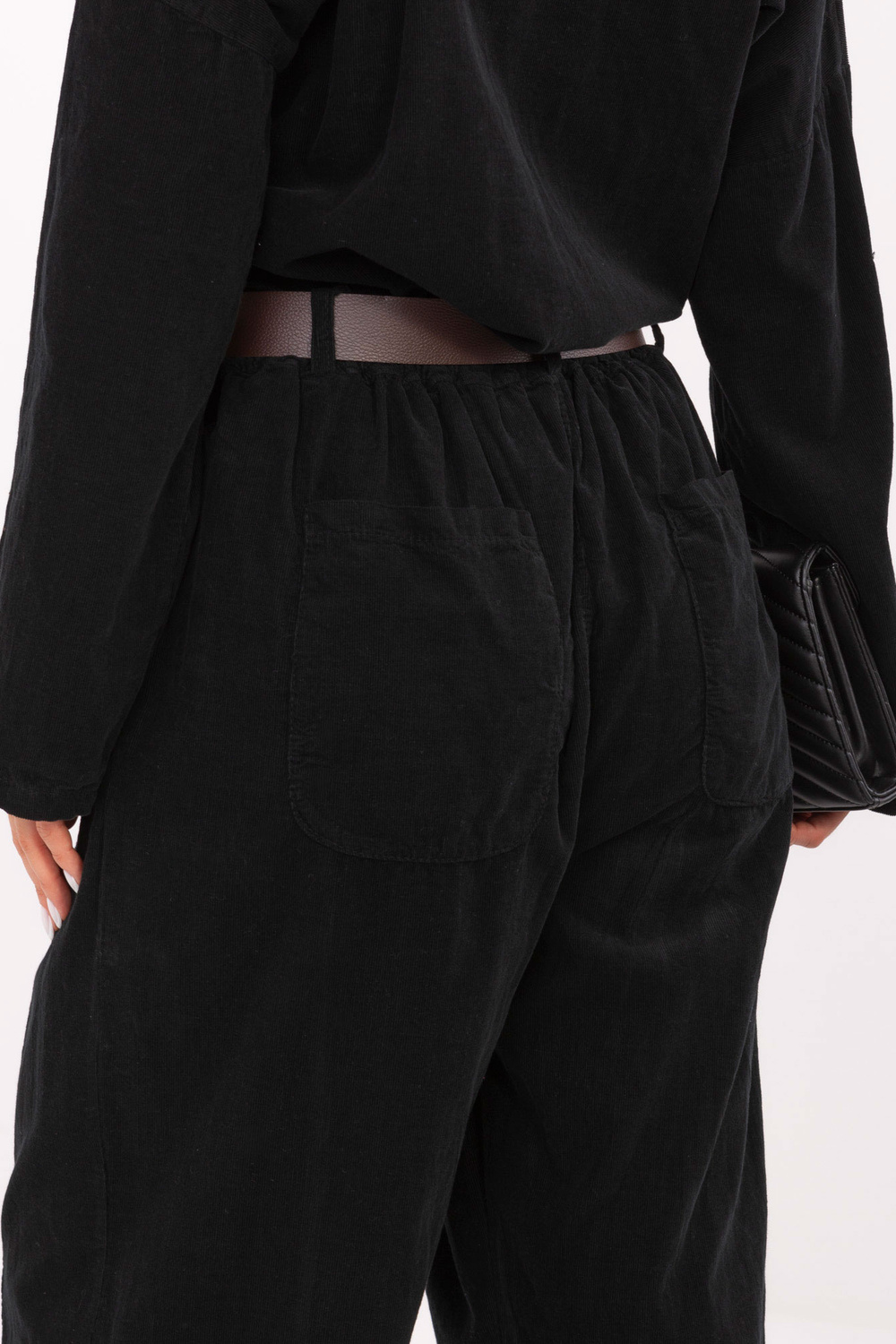 Vienas izmērs biksēm, mērīts guļus plakni: vidukļa platums – 36 cm (plakni), vidukļa platums – 60 cm (izstiepts), gurnu platums – 61 cm, vidukļa augstums – 35 cm, kopējais garums – 93 cm.
