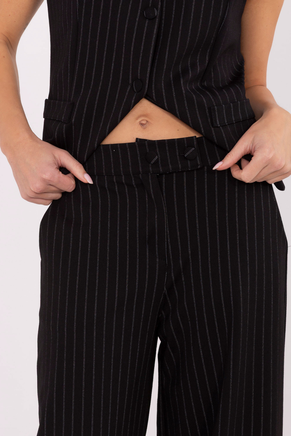 Viena izmēra biksu izmēri, mērīti izgludināti: jostasvietas platums – 34 cm (izgludināts), jostasvietas platums – 52 cm (izstiepts), gurnu platums – 50 cm, vidukļa augstums – 31 cm, kopējais garums – 108 cm.