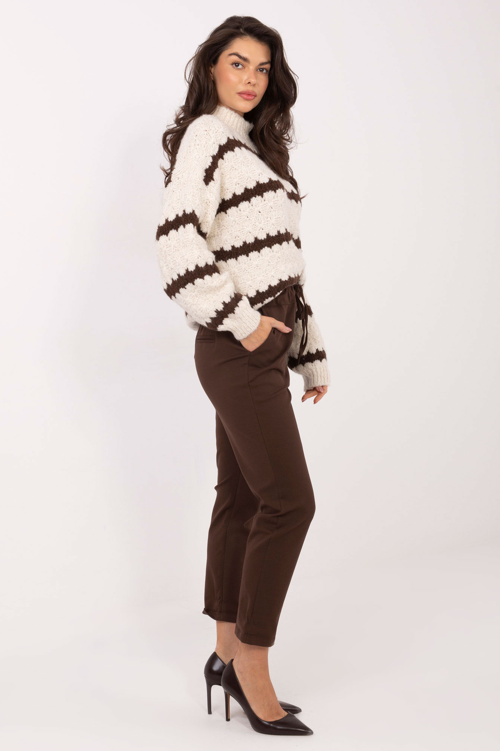 Modelis valkā viena izmēra apģērbu. Modeļa izmēri: augums 173 cm, krūtis 85 cm, viduklis 62 cm, gurni 95 cm.