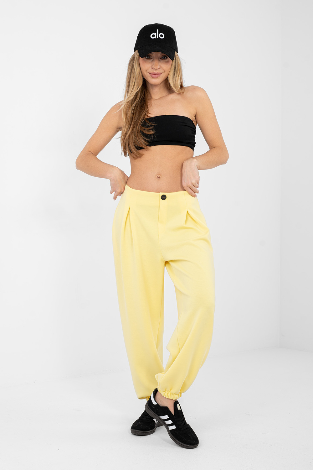 Modelis valkā viena izmēra apģērbu. Modeļa izmēri: augums 169 cm, krūtis 88 cm, viduklis 68 cm, gurni 89 cm .