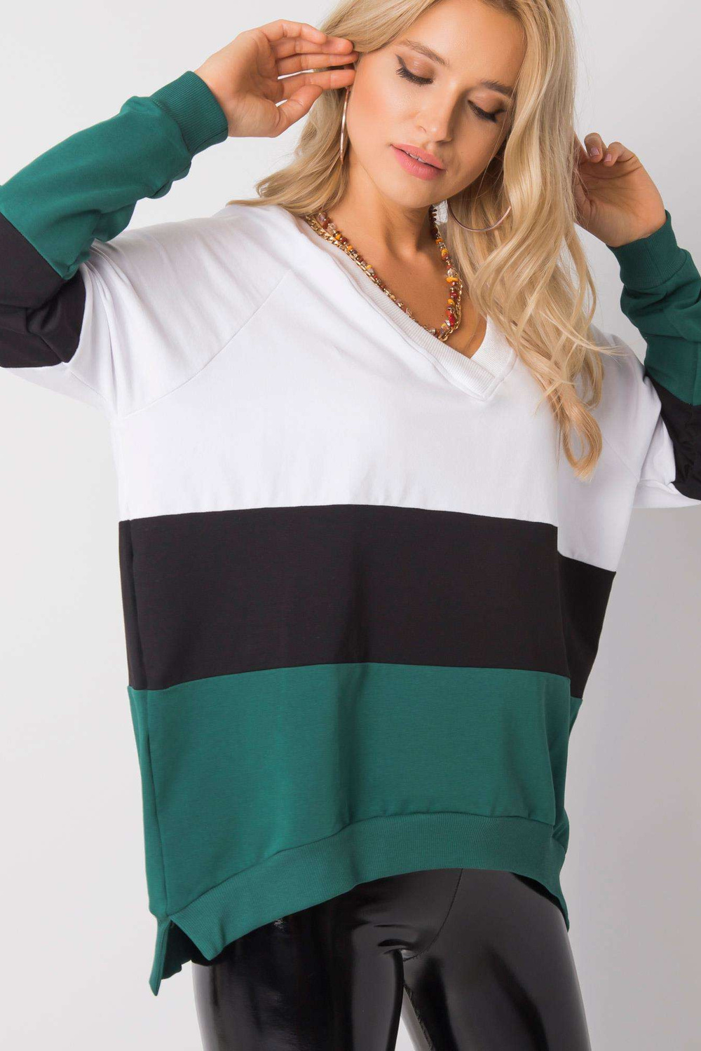 Modelis valkā S/M izmēru. Modeļa izmēri: augstums 175 cm, krūtis 84 cm, viduklis 65 cm, gurni 92 cm.