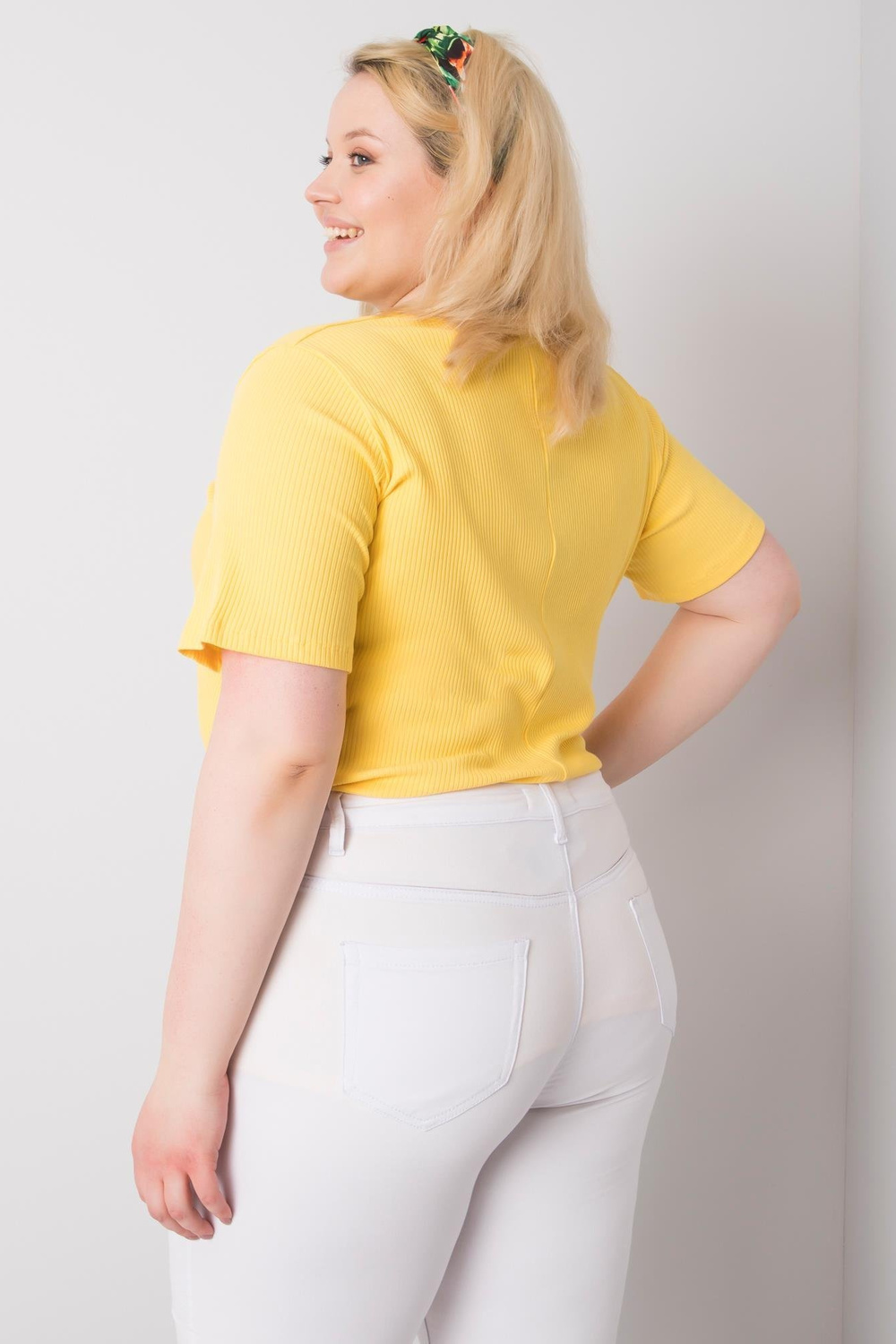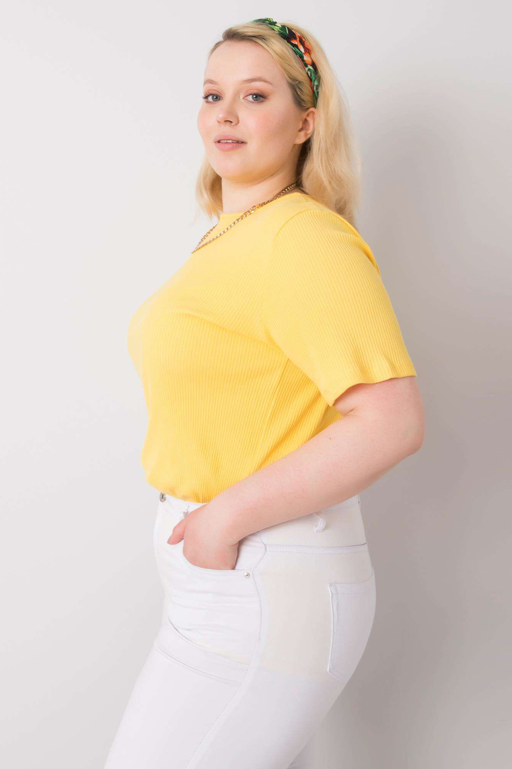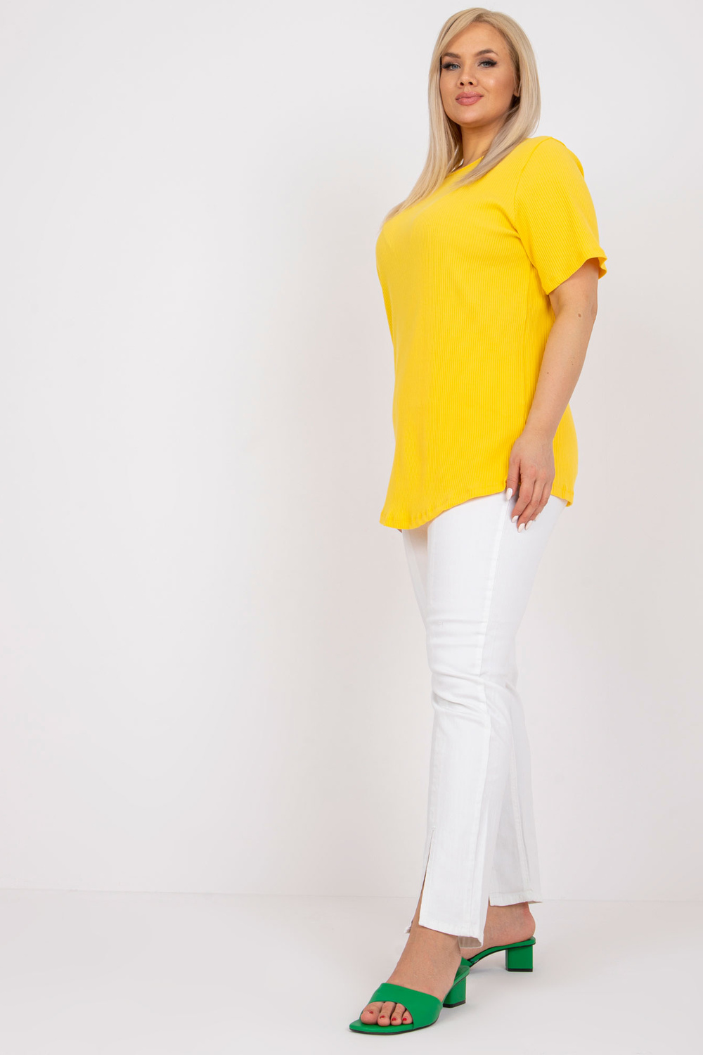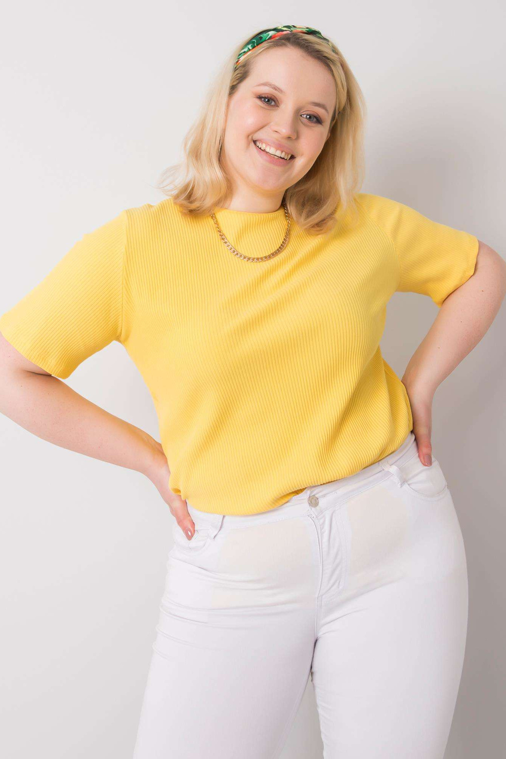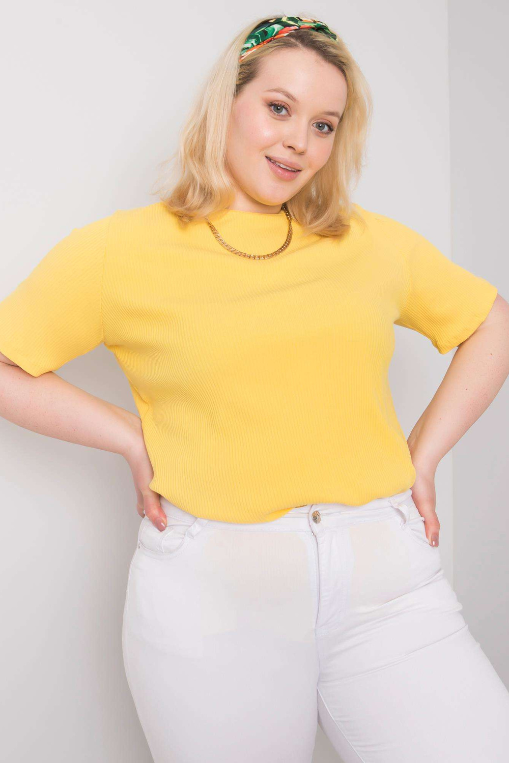 Dzeltena plus izmēra blūze no rievota auduma Stella strong> .
