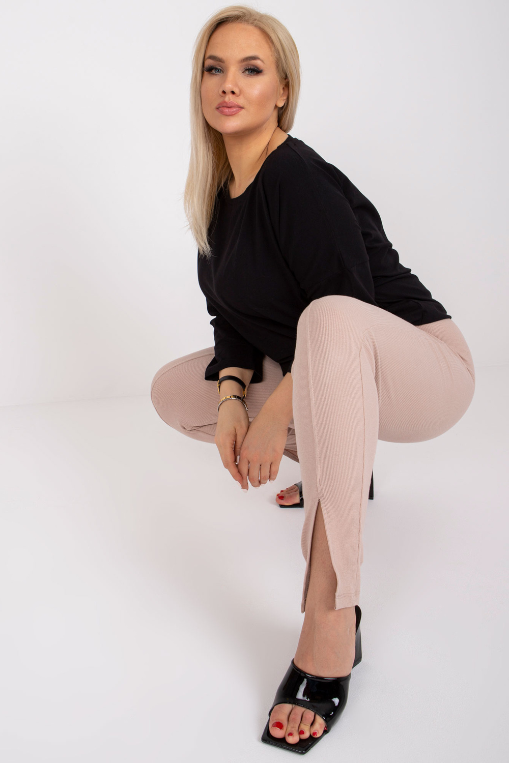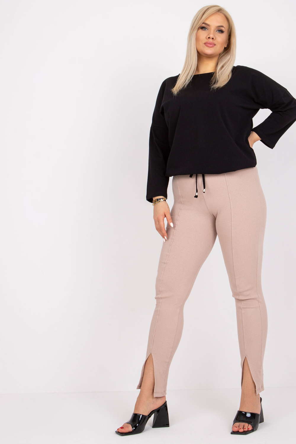 Modele valkā 2XL izmēru. Modeļa izmēri: augums 172 cm, krūtis 103 cm, viduklis 73 cm, gurni 103 cm.
