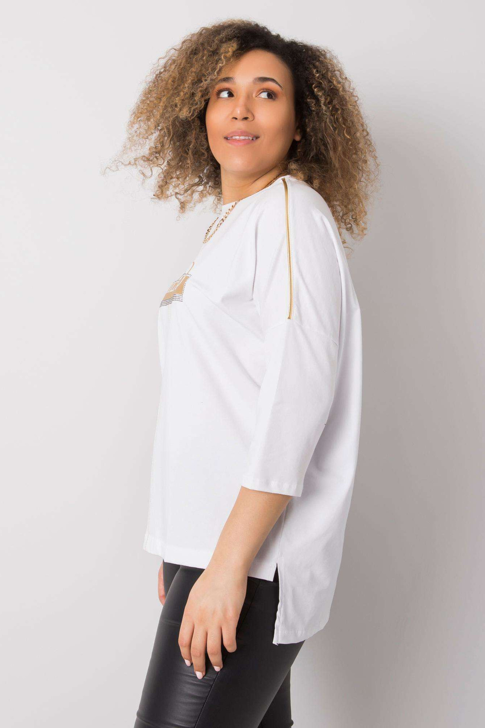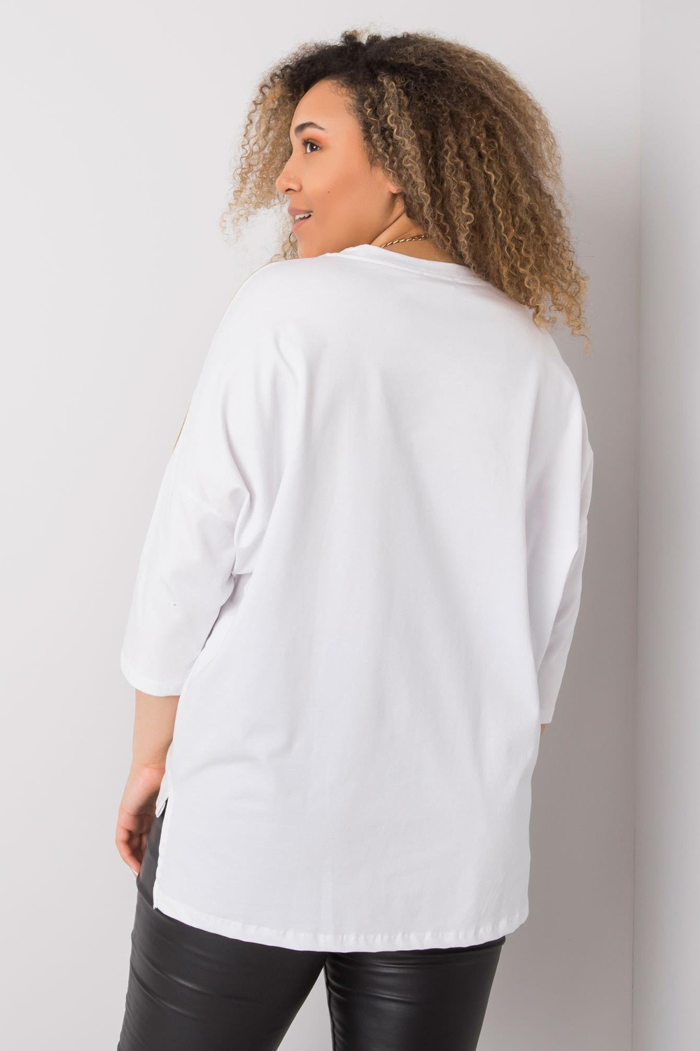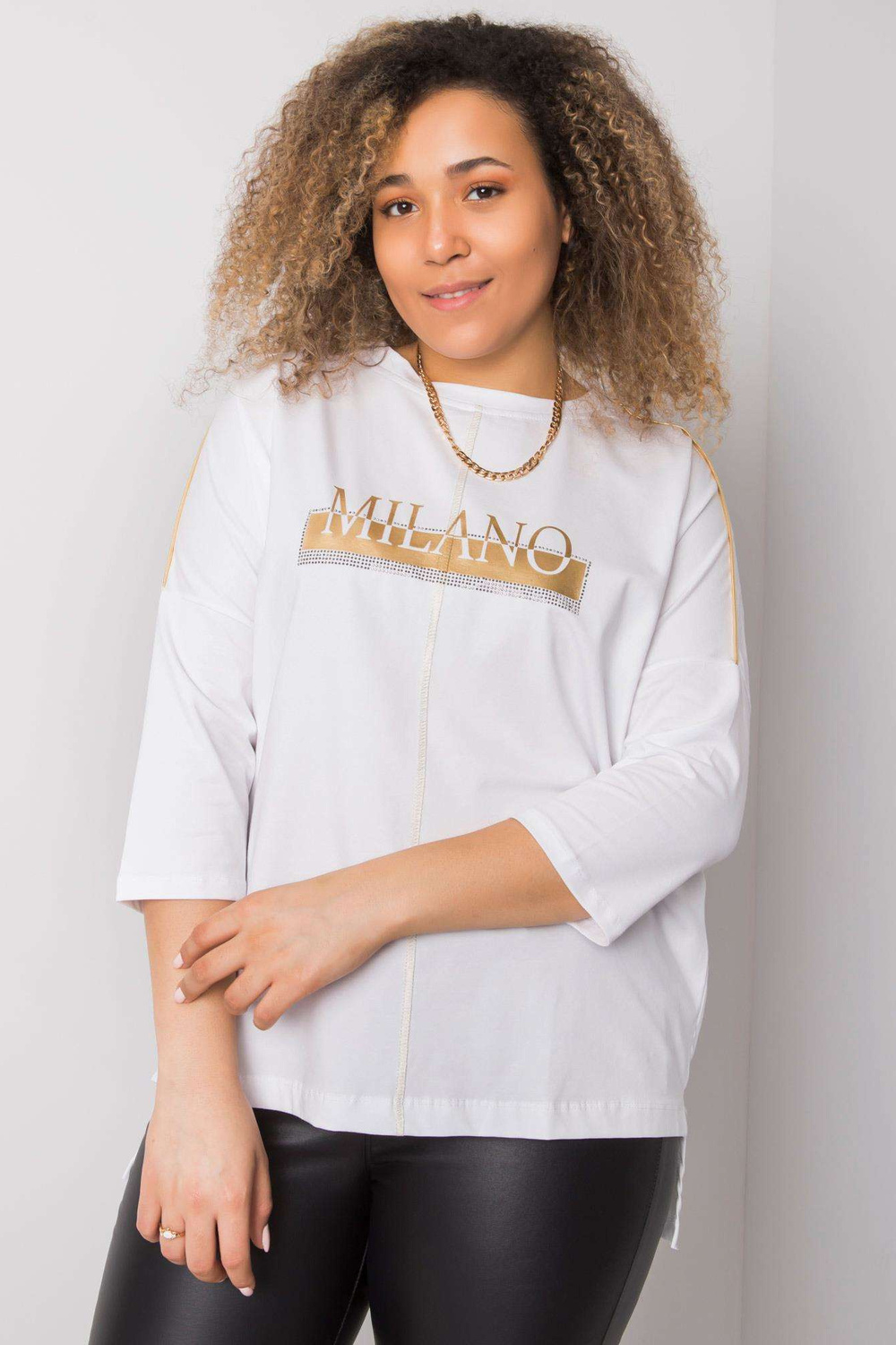 Viena izmēra blūzes izmēri, mērot plakani: platums zem padusēm - 73 cm, kopējais garums - 75 cm, piedurkņu garums - 43 cm