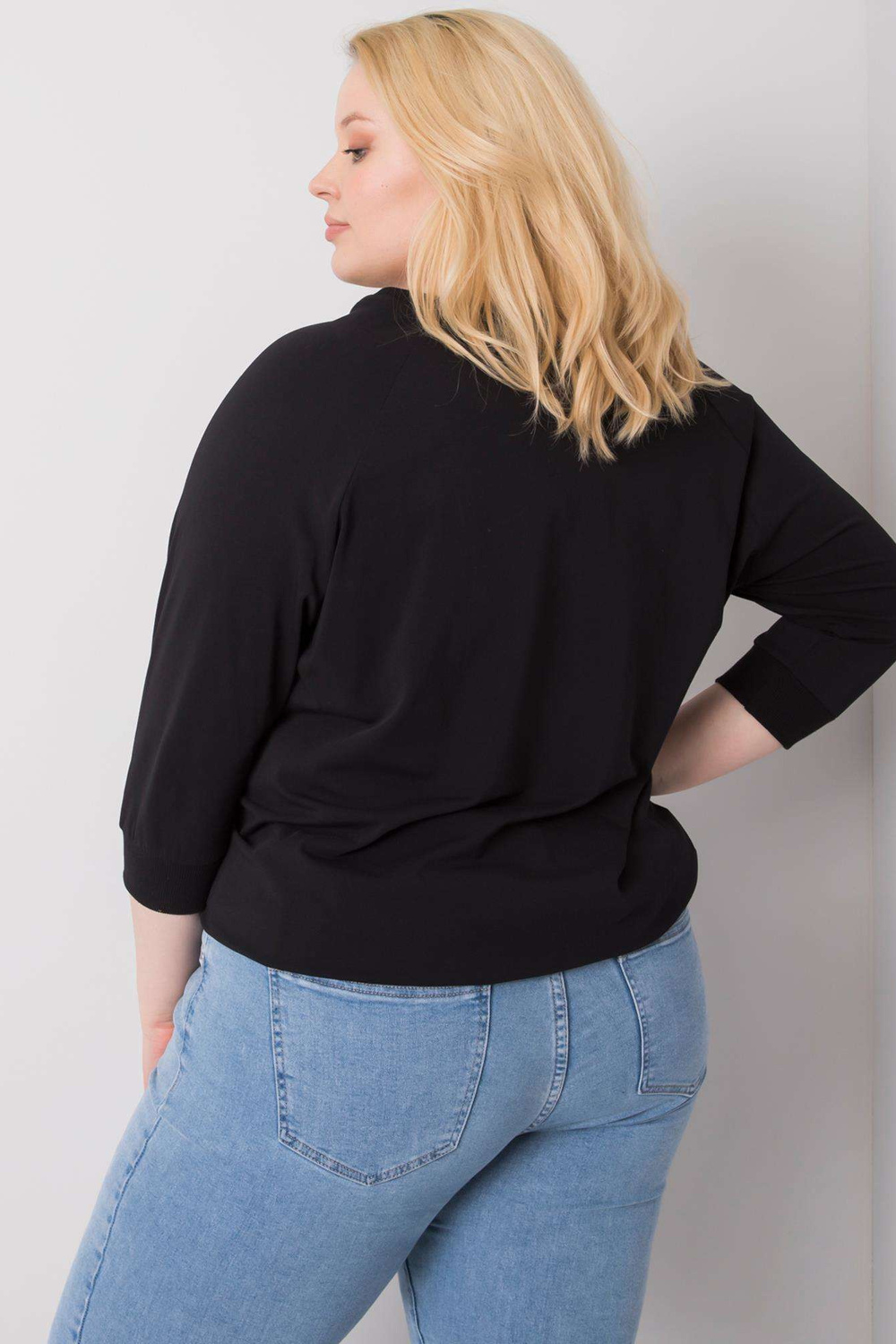 Viena izmēra blūzes izmēri, mērot plakani: platums zem padusēm - 67 cm, kopējais garums - 73 cm, piedurknes garums - 44 cm