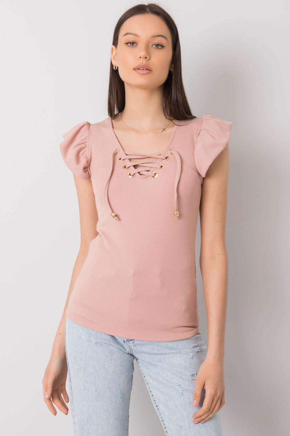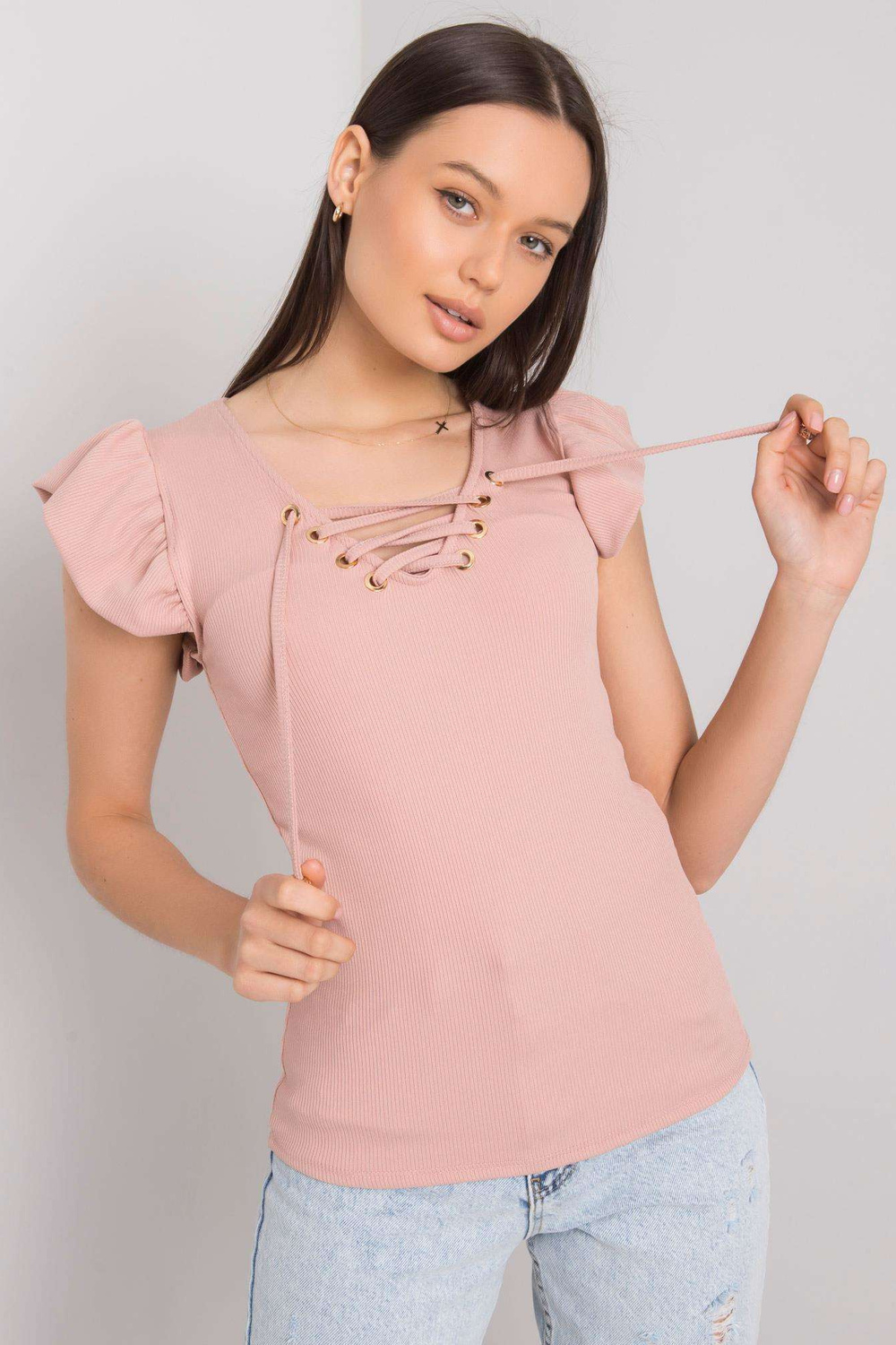 Netīri rozā blūze ar Waverly šņorēm.