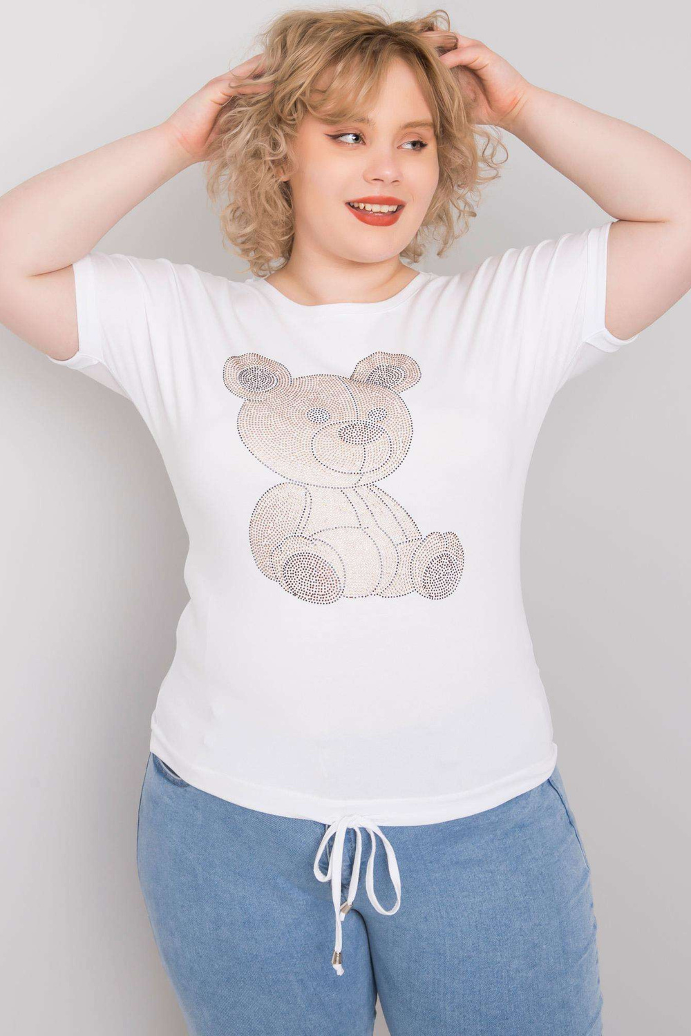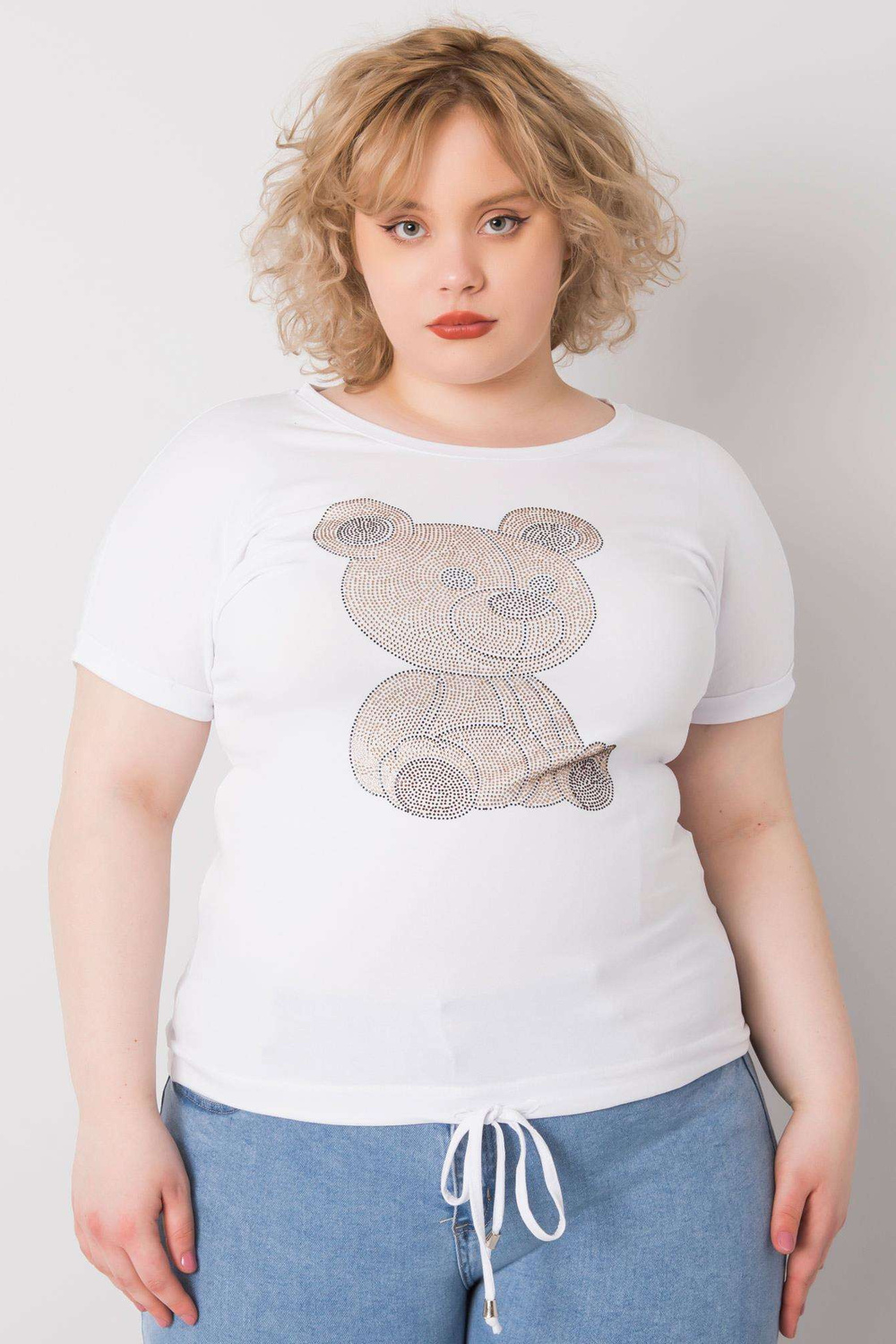 Whiteplus izmēra blūze ar rhinestones Luce. Materiāla sastāvs: 90% kokvilna, 10% elastāns mazgāšanas metode: veļas mašīna 30°C. Modelis valkā viena izmēra izmēru. Modeļa izmēri: augums 179 cm, krūtis 116 cm, viduklis 98 cm, gurni 119 cm. Viena izmēri