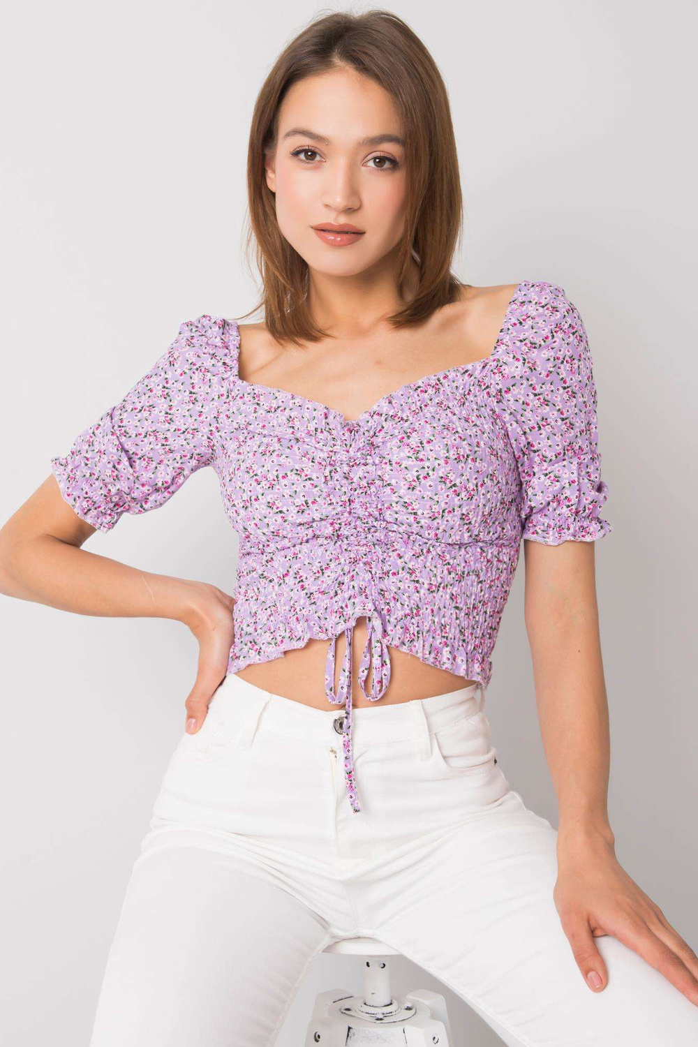 Violeta blūze ar Gloire RUE PARIS rakstiem.