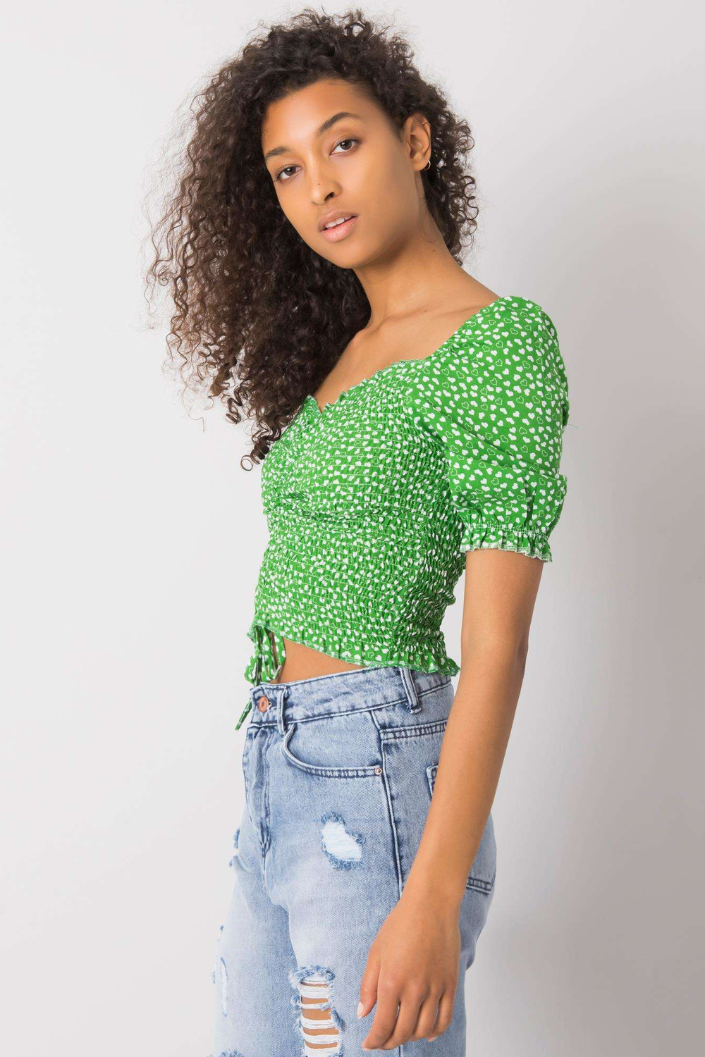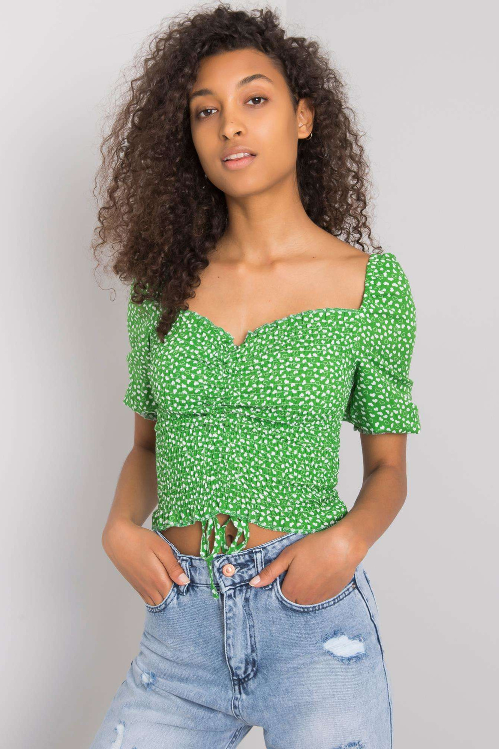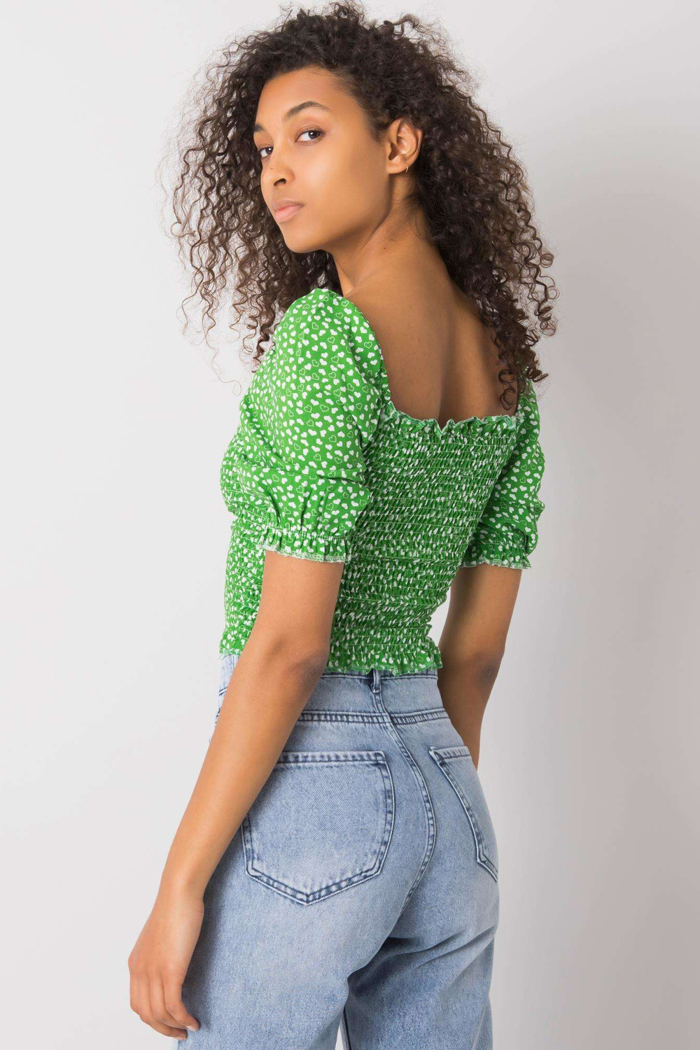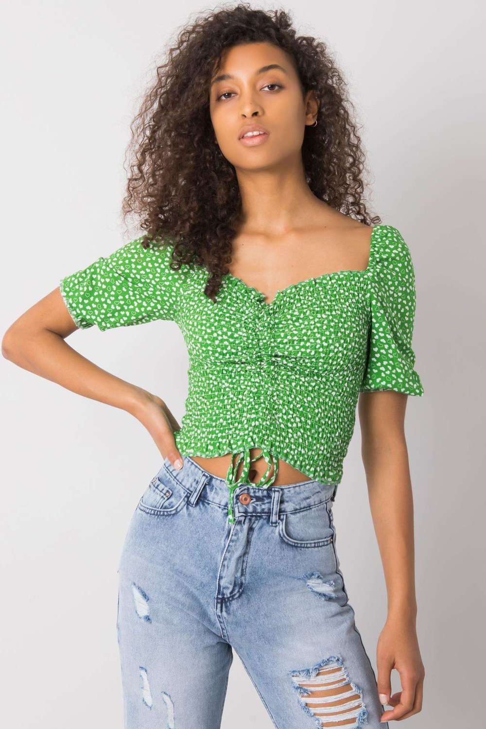 Zaļā blūze ar Aurinda RUE PARIS rakstiem.
