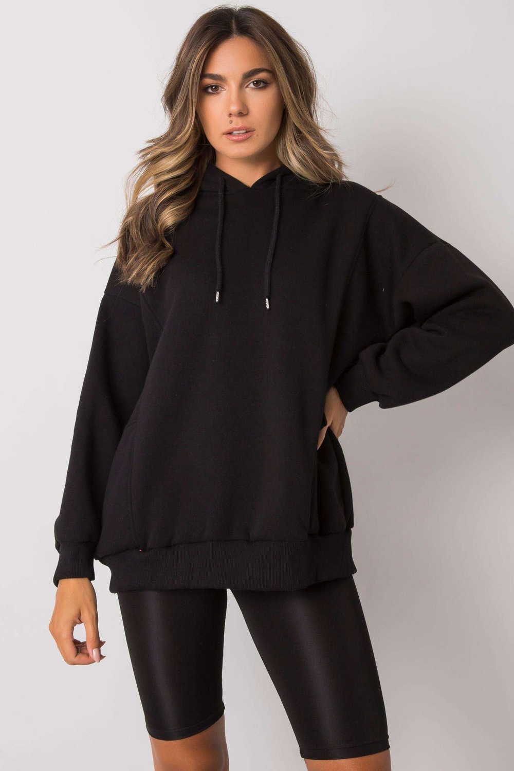 Melns džemperis ar Ariannas kabatām . materiāla sastāvs: 72% kokvilna, 22% poliesters, 6% elastāns mazgāšanas metode: veļas mašīna 30°C. Modelis valkā S/M izmēru. Modeļa izmēri: augums 175 cm, krūtis 85 cm, viduklis 65 cm, gurni 89 cm. s