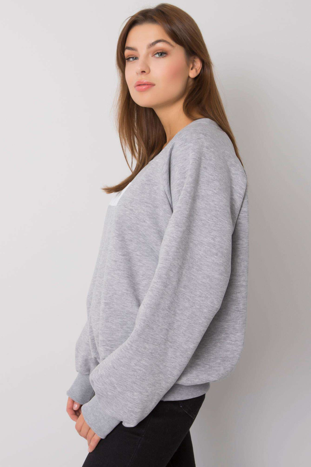 Džordija pelēks sporta krekls bez kapuces.