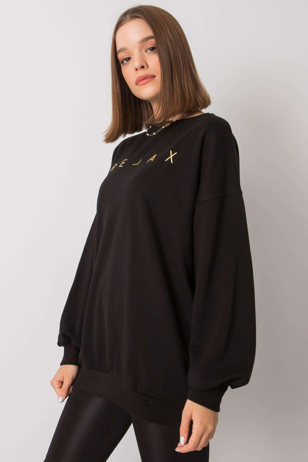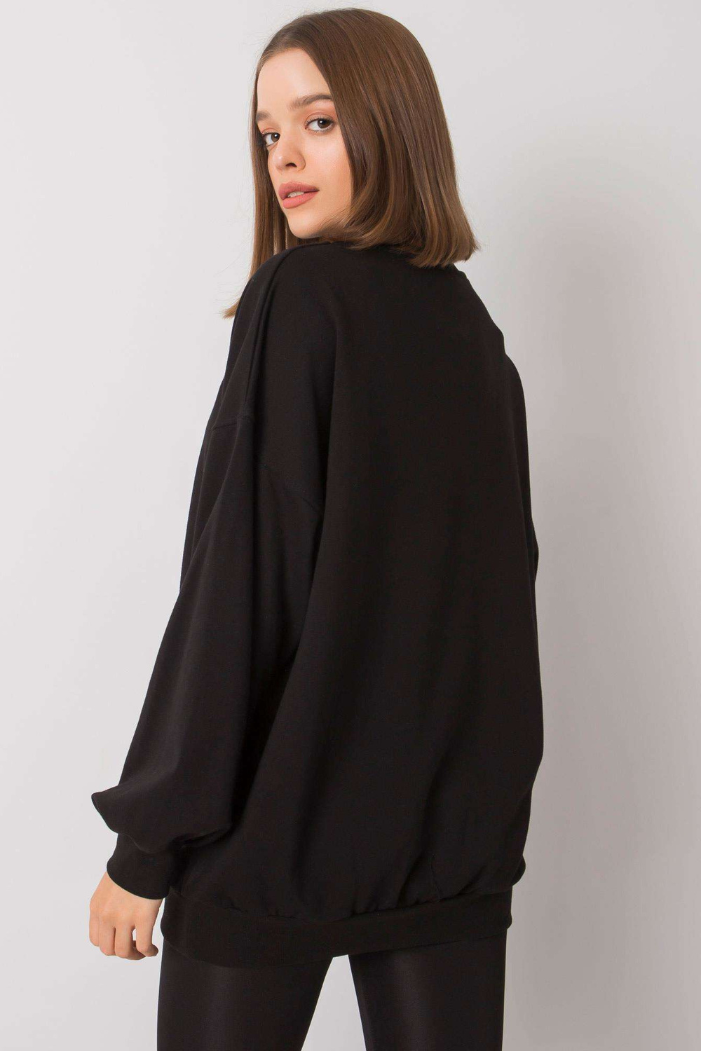 Melns džemperis ar uzrakstu Adelynn . materiāla sastāvs: 70% kokvilna, 30% poliesters mazgāšanas metode: veļas mašīna 30°C. Modelis valkā S/M izmēru. Modeļa izmēri: augums 169 cm, krūtis 90 cm, viduklis 60 cm, gurni 84 cm. Sporta krekla izmēri