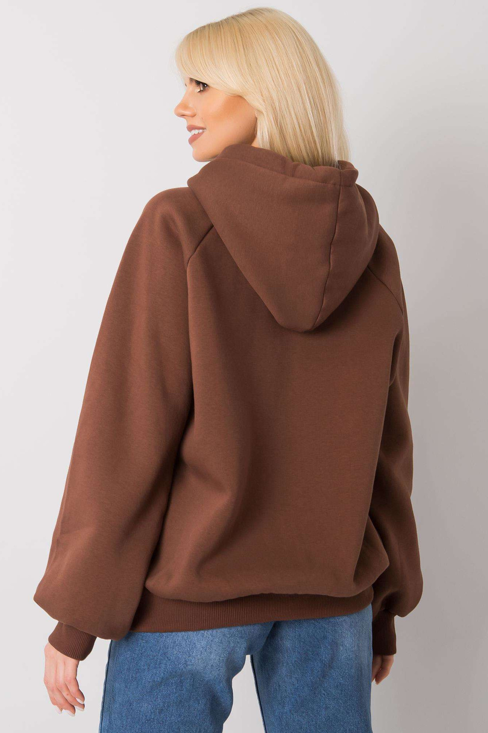 Brūni polsterēts džemperis Dina. piedevas: sildošs materiālssastāvs: 70% kokvilna, 30% poliesters mazgāšanas metode: veļas mašīna 30°C. Modelis valkā S/M izmēru. Modeļa izmēri: augums 175 cm, krūtis 85 cm, viduklis 63 cm, gurni 95 cm. Sviedru kreklu izmēri