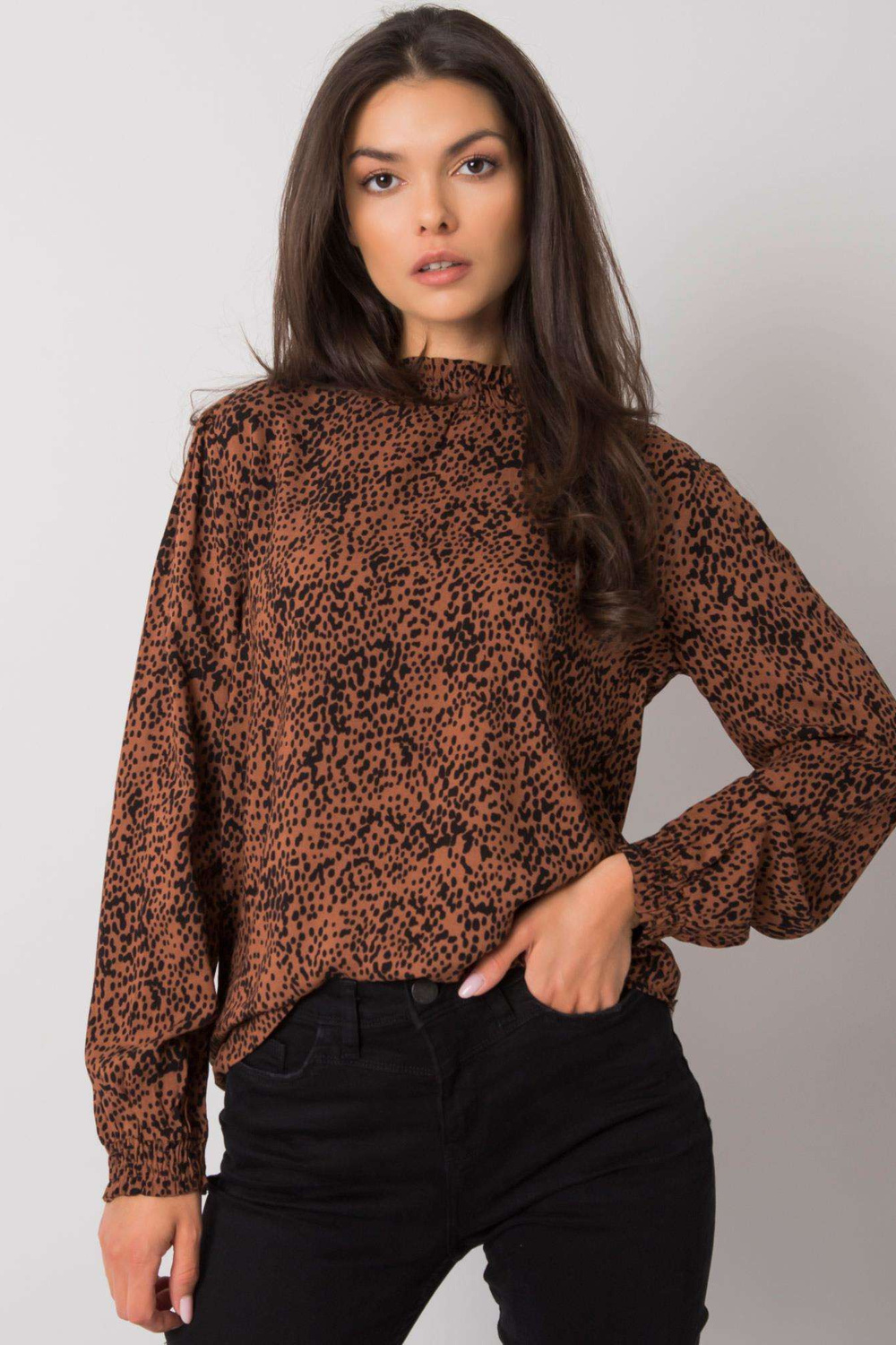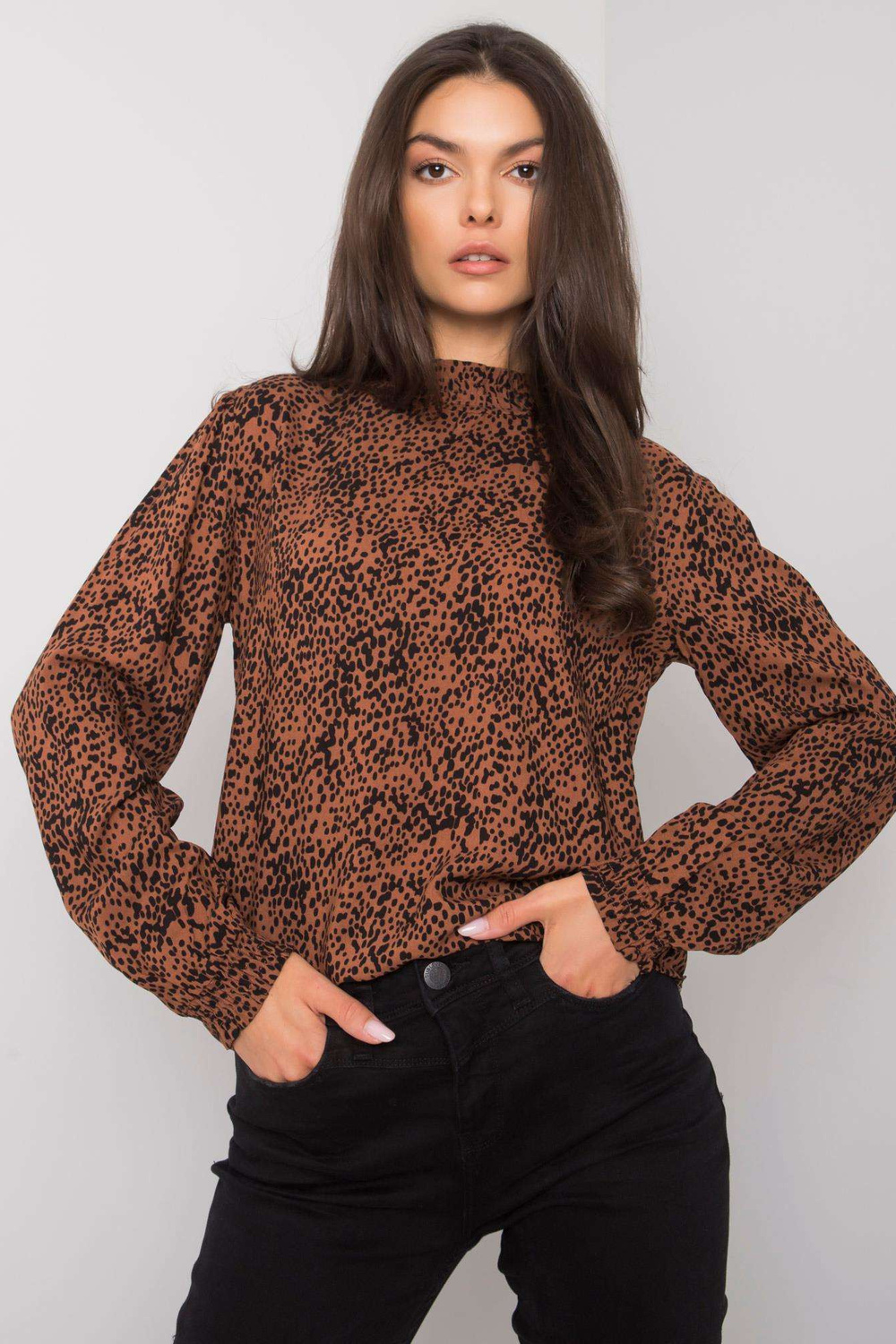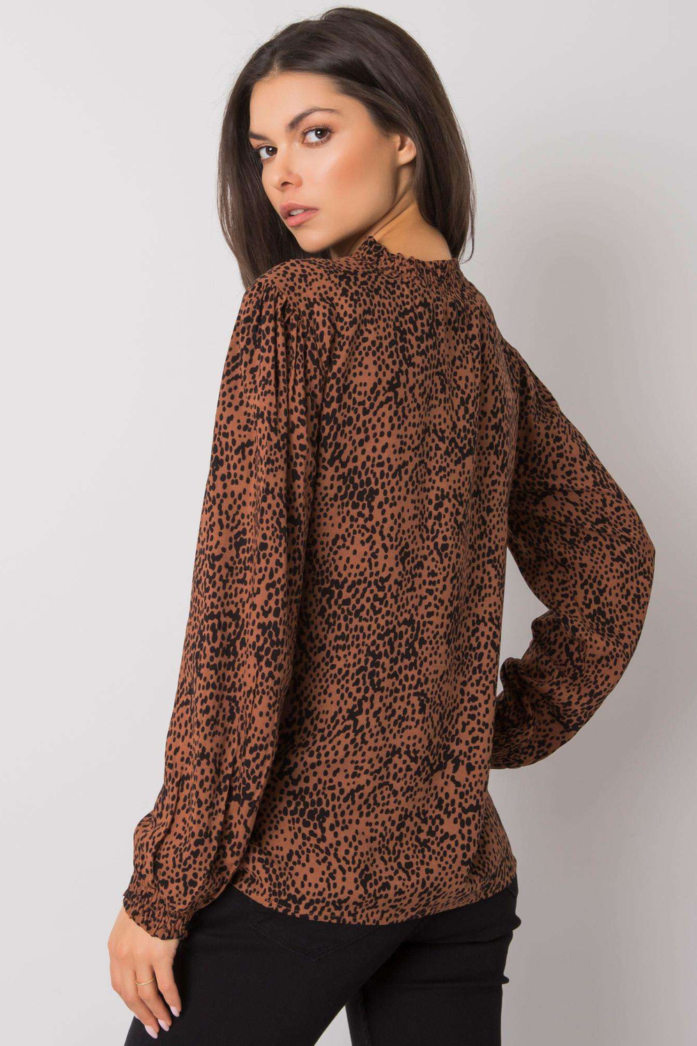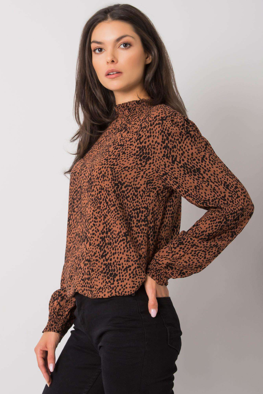 Brūna blūze no viskozes Roy FRESH MADE. materiālssastāvs: 100% viskoze mazgāšanas metode: veļas mašīna 30°C Modelis valkā S izmēru. Modeļa izmēri: augums 173 cm, krūtis 83 cm, viduklis 60 cm, gurni 90 cm. Blūzes izmēri S