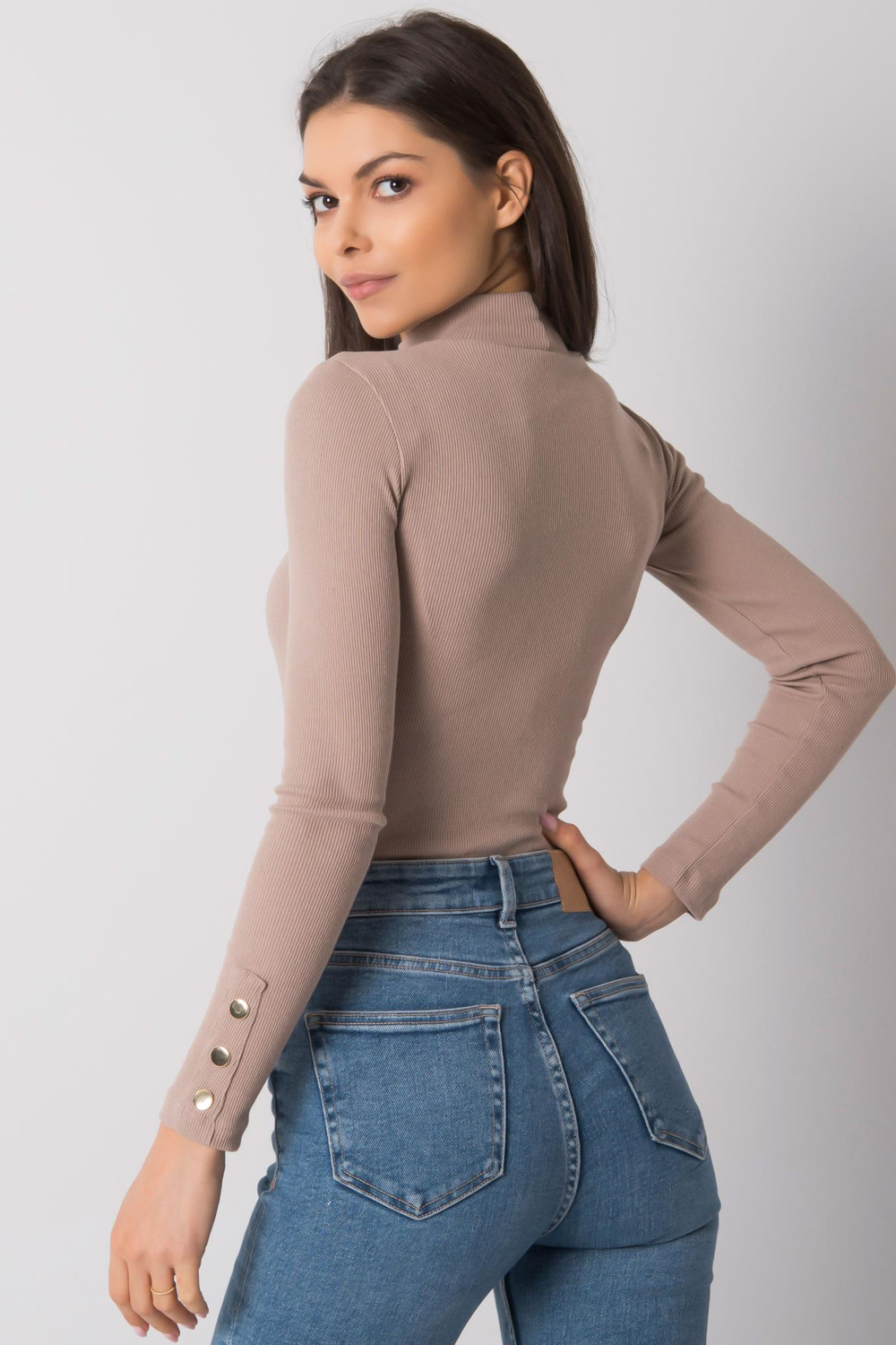 Tumši bēša blūze ar izgriezumu Attale . materiālssastāvs: 90% kokvilna, 10% elastāns mazgāšanas metode: mazgāšana veļasmašīnā 30°C Modelis valkā S izmēru. Modeļa izmēri: augums 173 cm, krūtis 83 cm, viduklis 60 cm, gurni 90 cm. Blūzes izmēri s