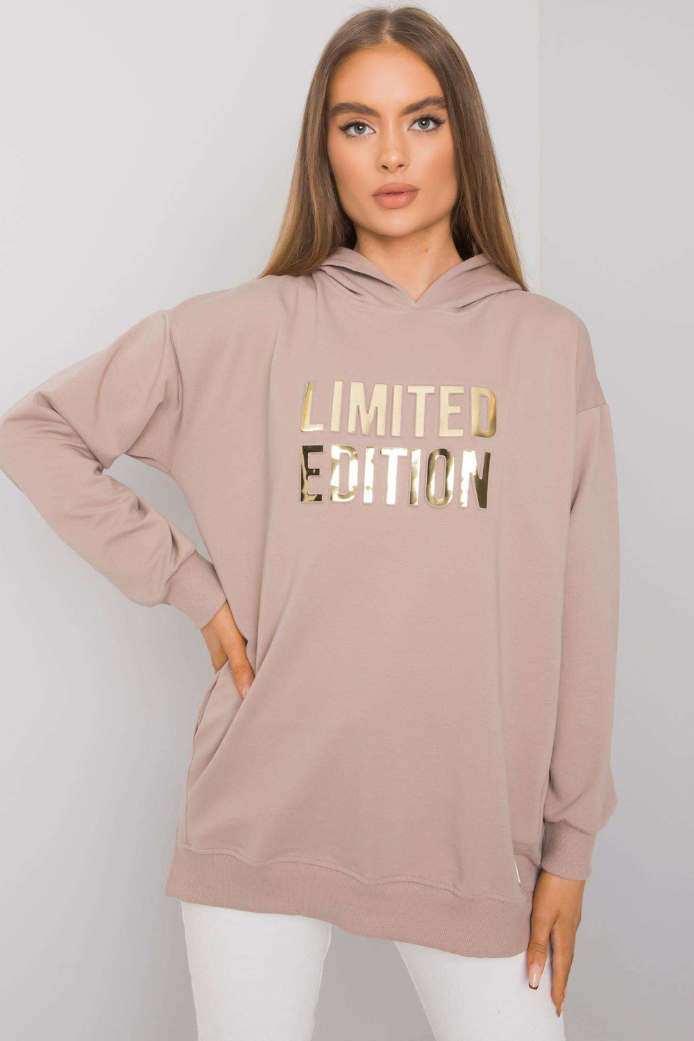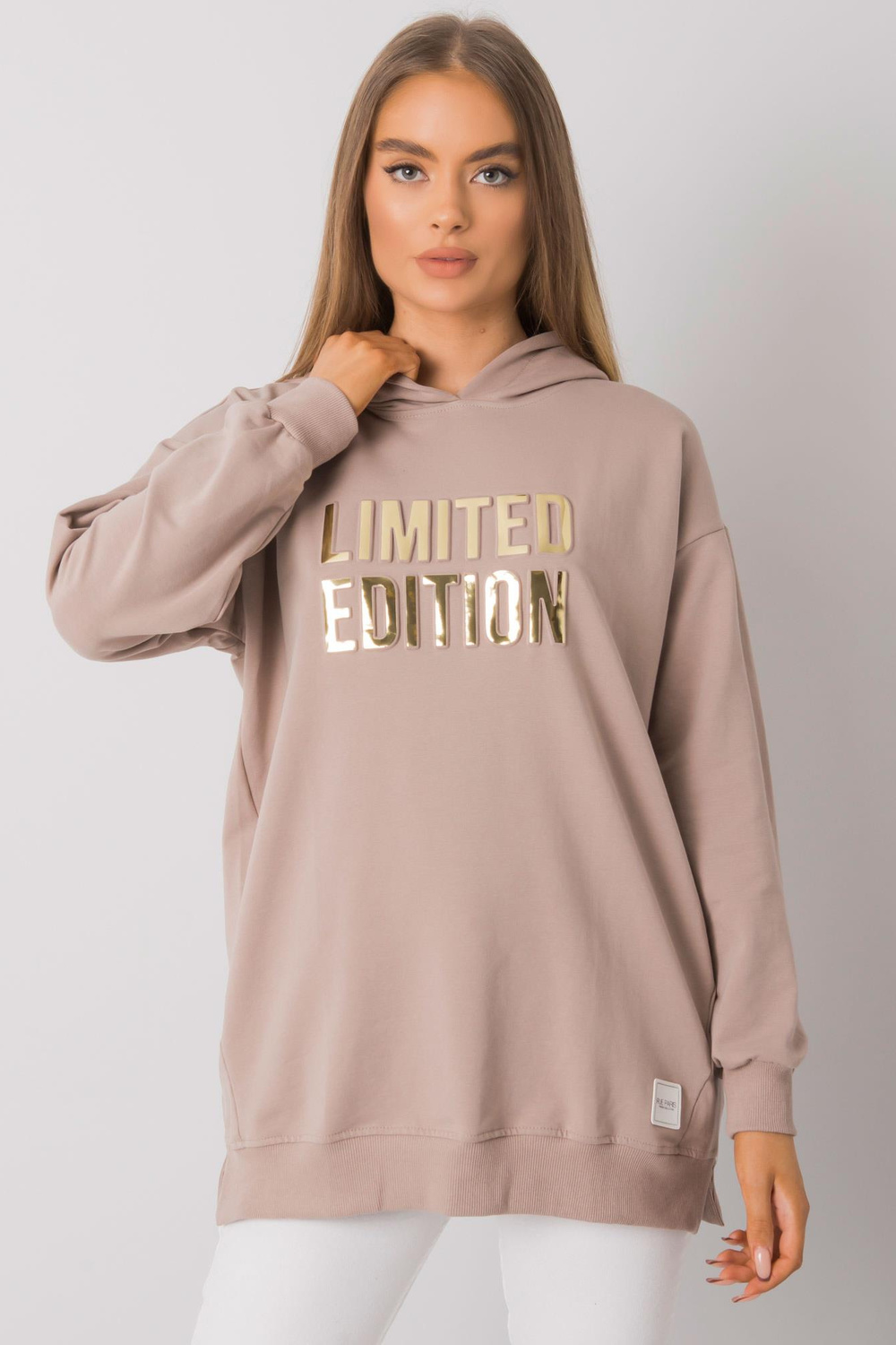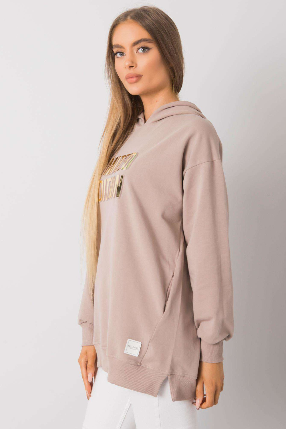 Tumši bēšs sieviešu sporta krekls ar kapuci Clothilde RUE PARIS.