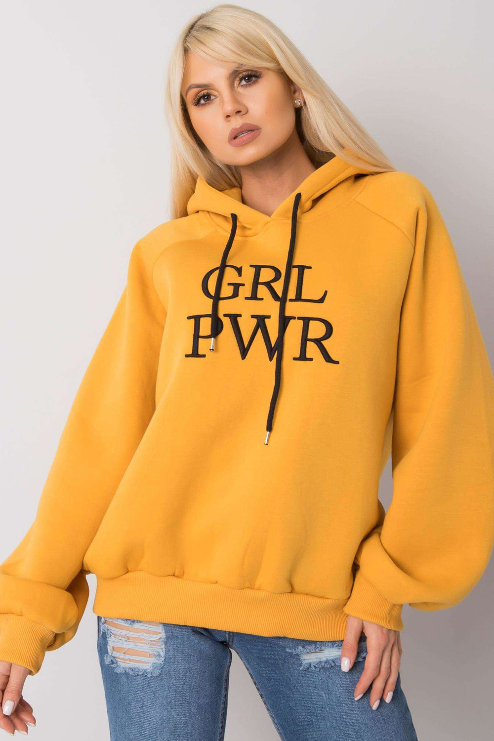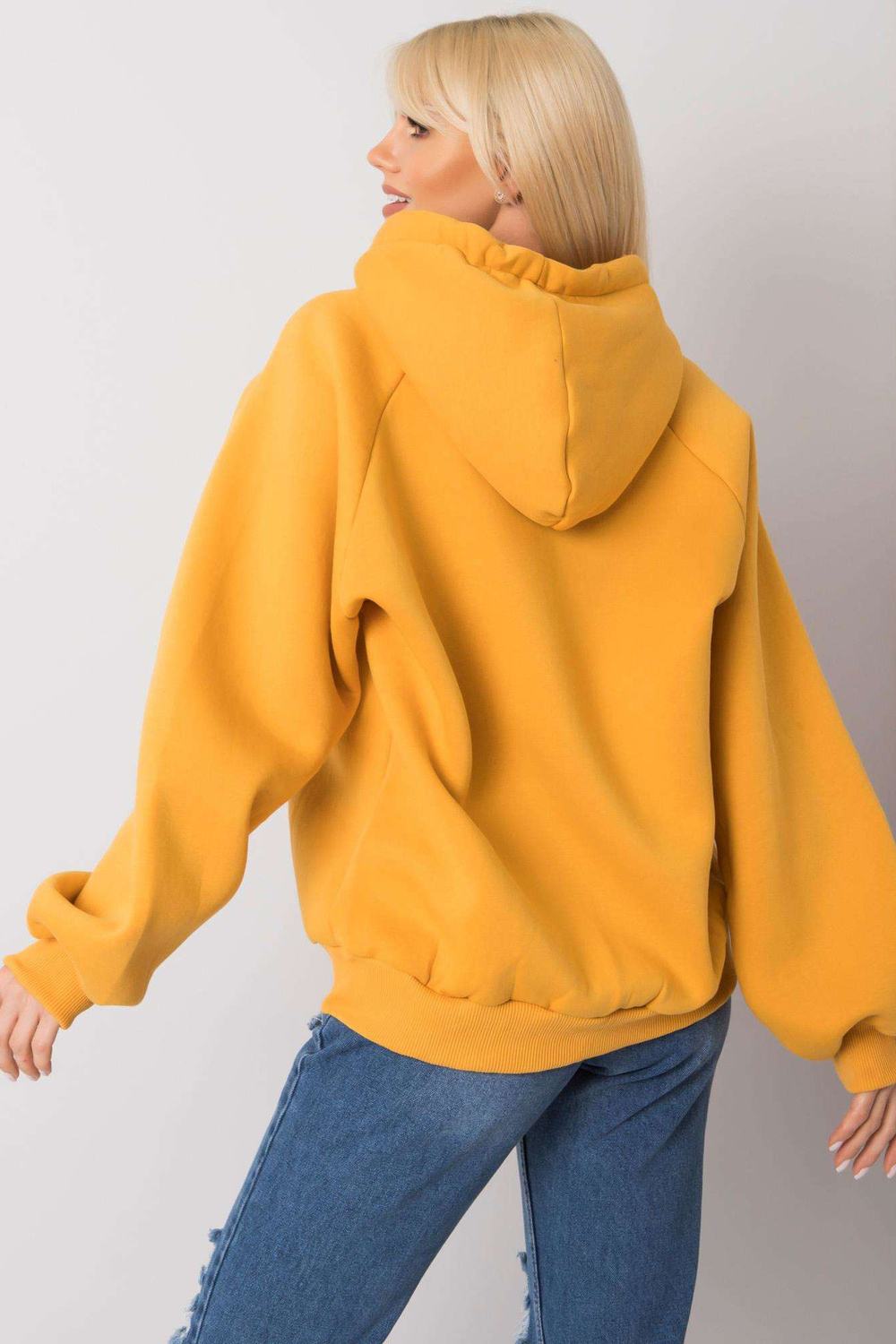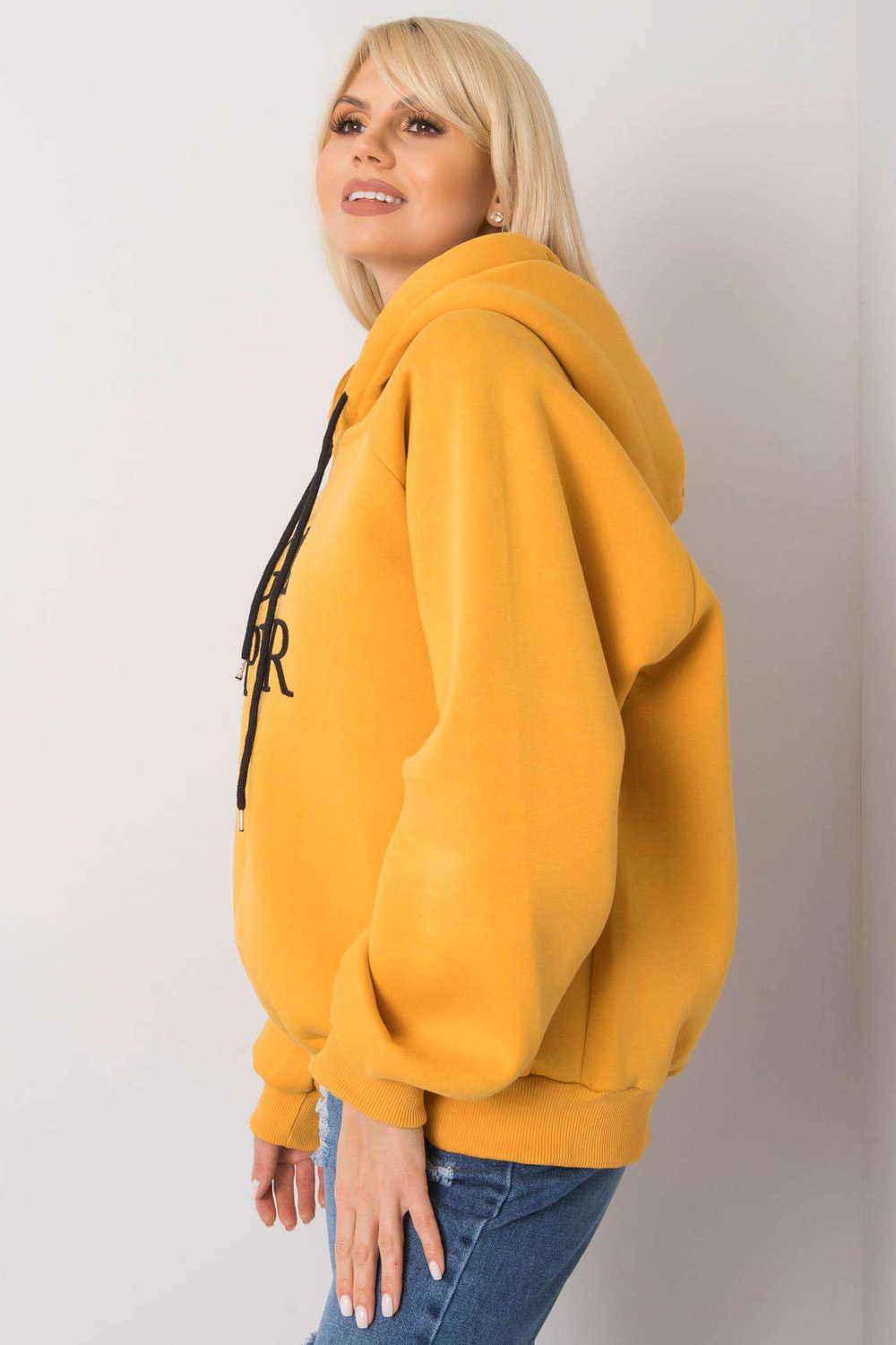 Debijas tumši dzeltenā polsterētā kapuce. piedevas: sildošs materiālssastāvs: 70% kokvilna, 30% poliesters mazgāšanas metode: veļas mašīna 30°C. Modelis valkā S/M izmēru. Modeļa izmēri: augums 175 cm, krūtis 85 cm, viduklis 63 cm, gurni 95 cm. Izmēri swe