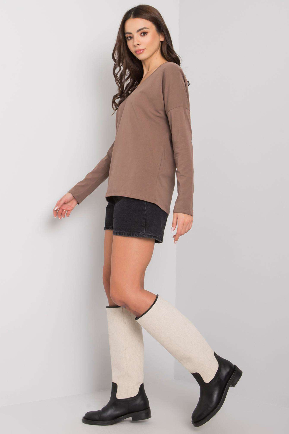 Brūnu sieviešu blūze ar garām piedurknēm Libourne RUE PARIS.