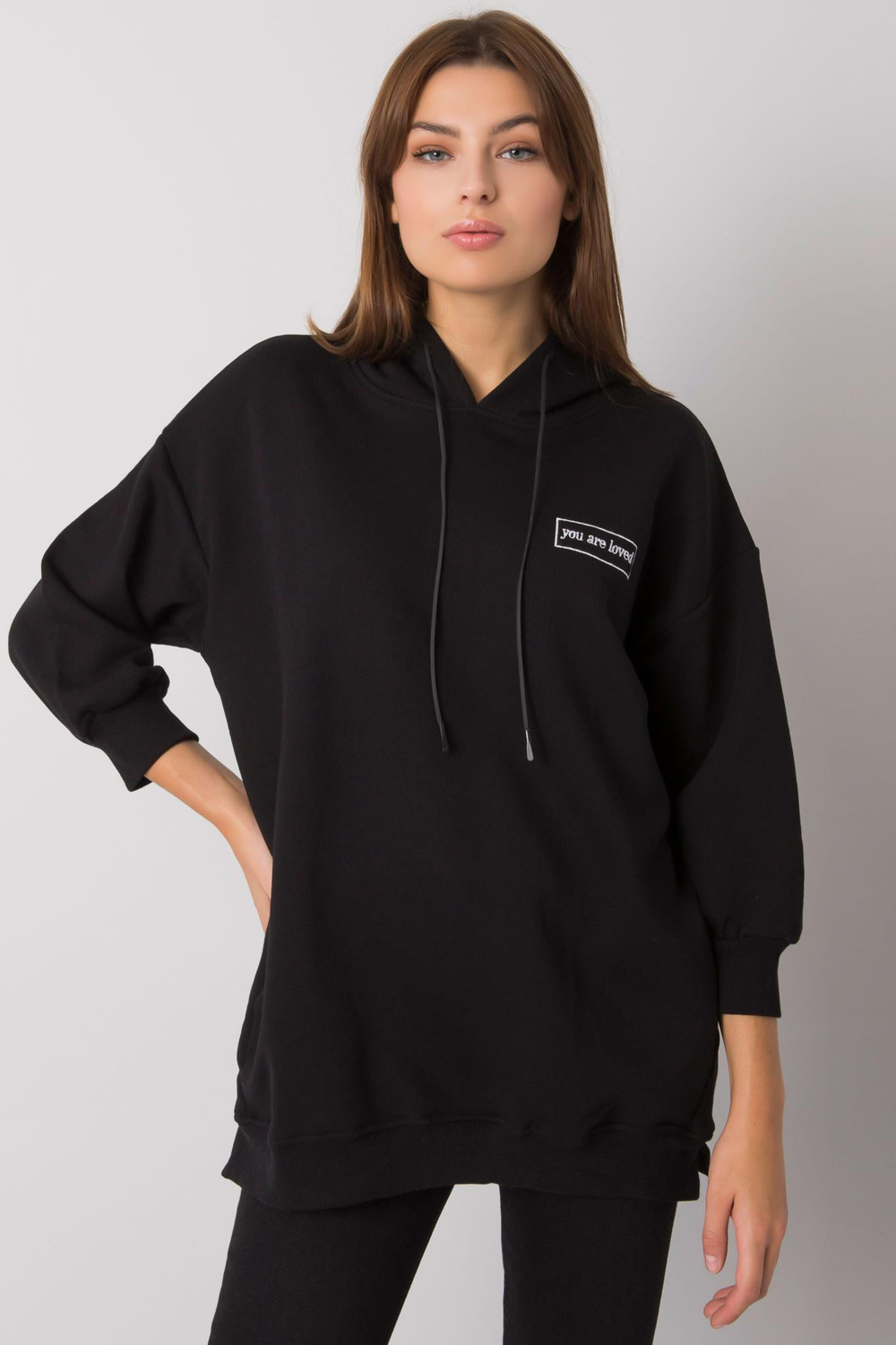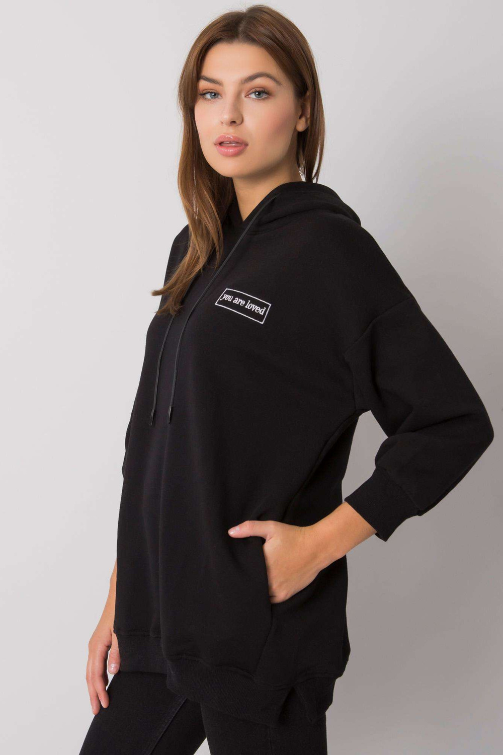 Melns džemperis ar Leora kabatām.