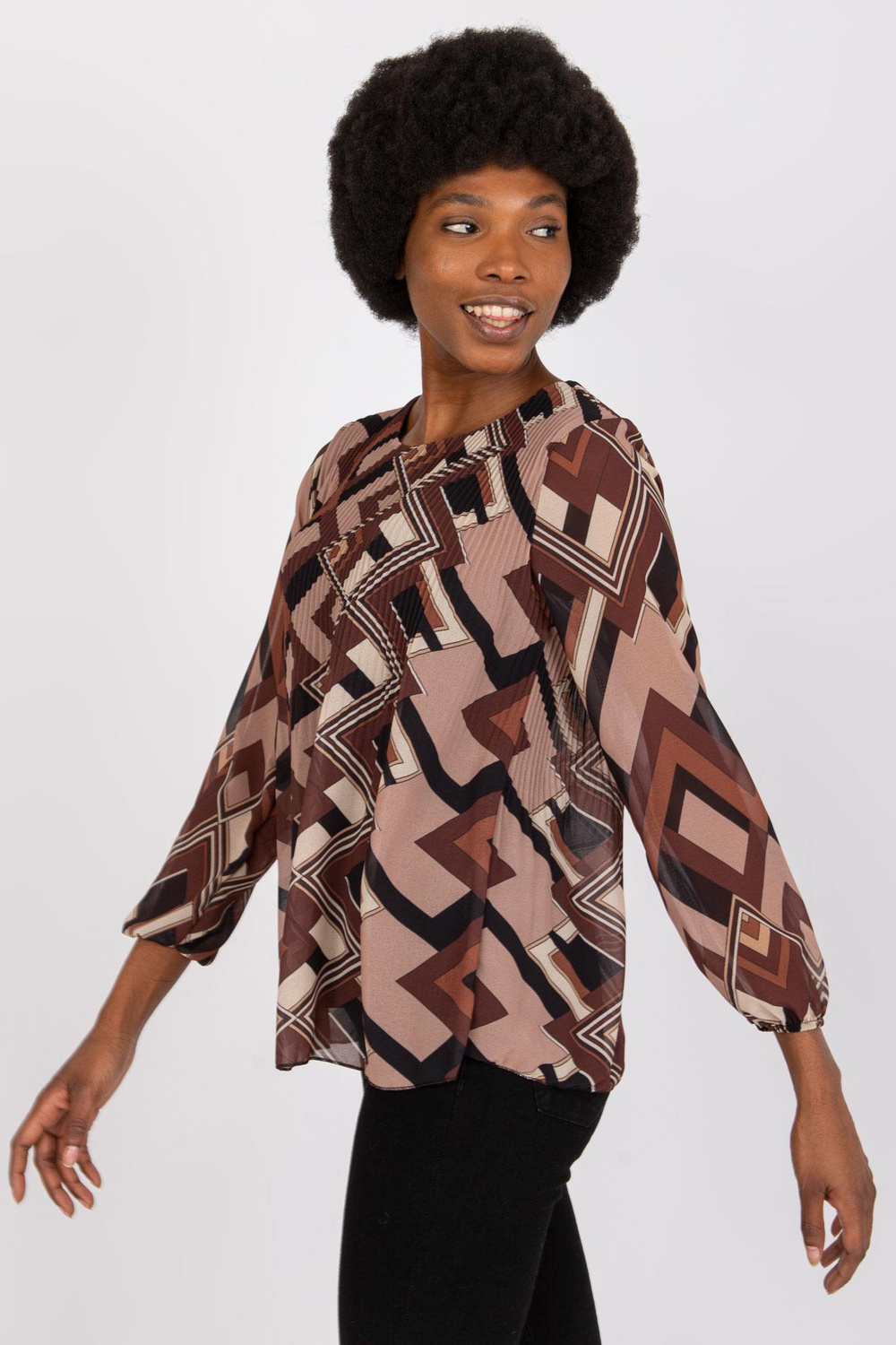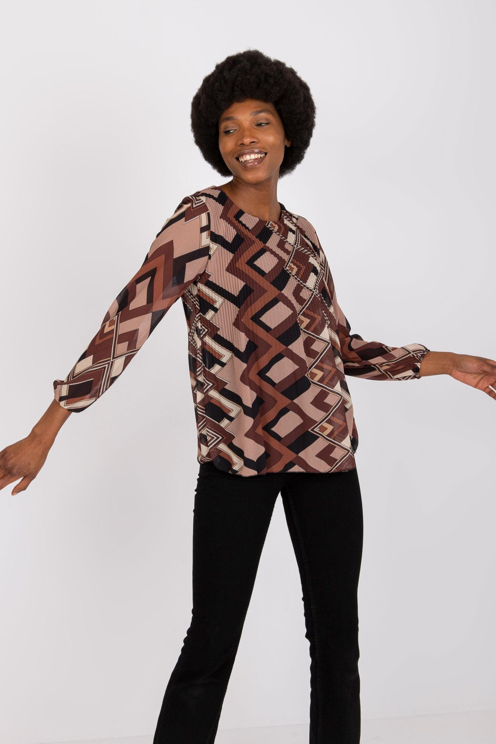 Brūna un bēša blūze ar Virdžīnijas apdruku