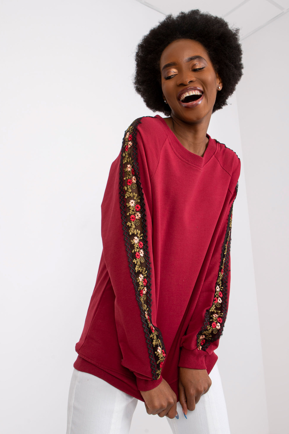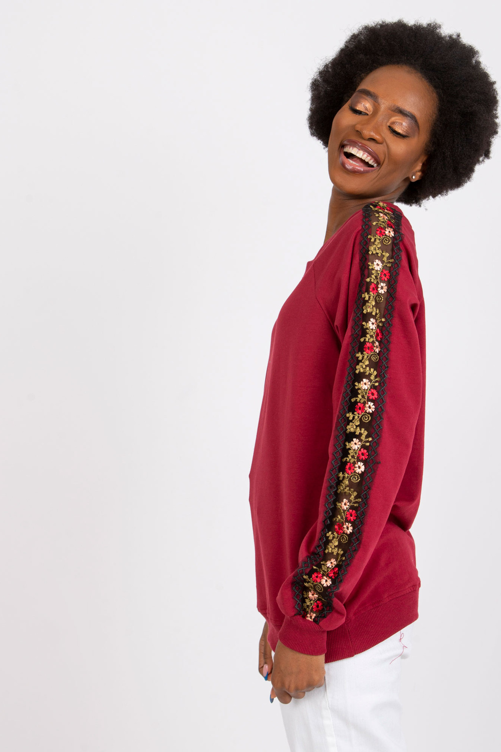 Burgundijas džemperis ar dekoratīvām piedurknēm Adana RUE PARIS .