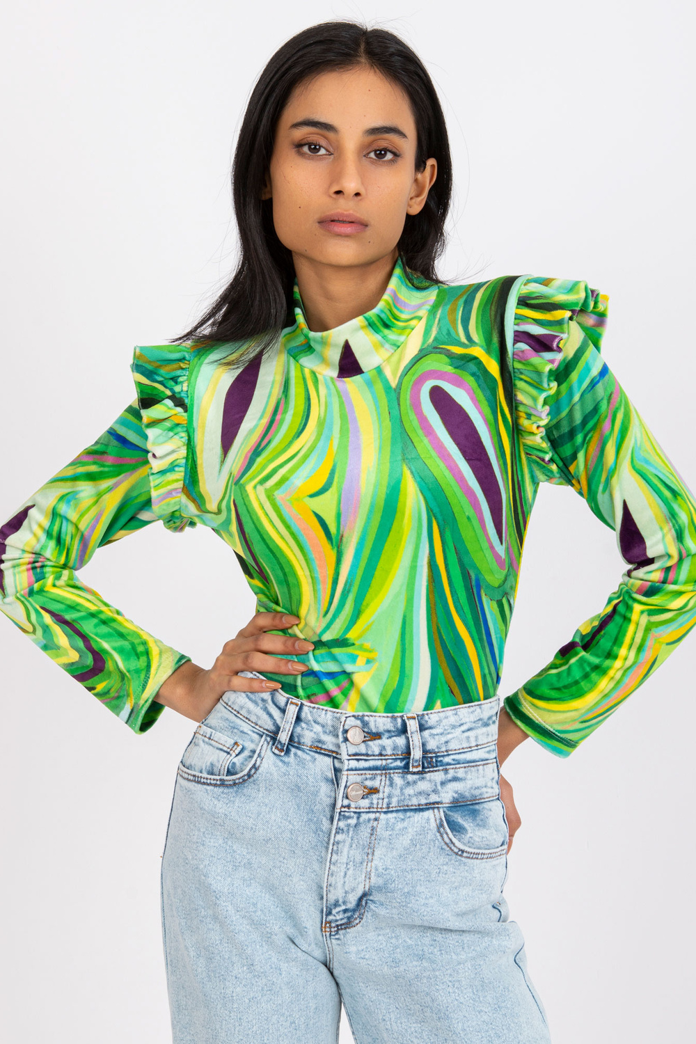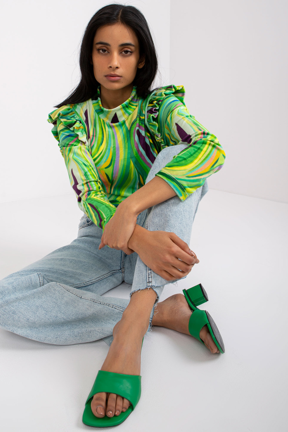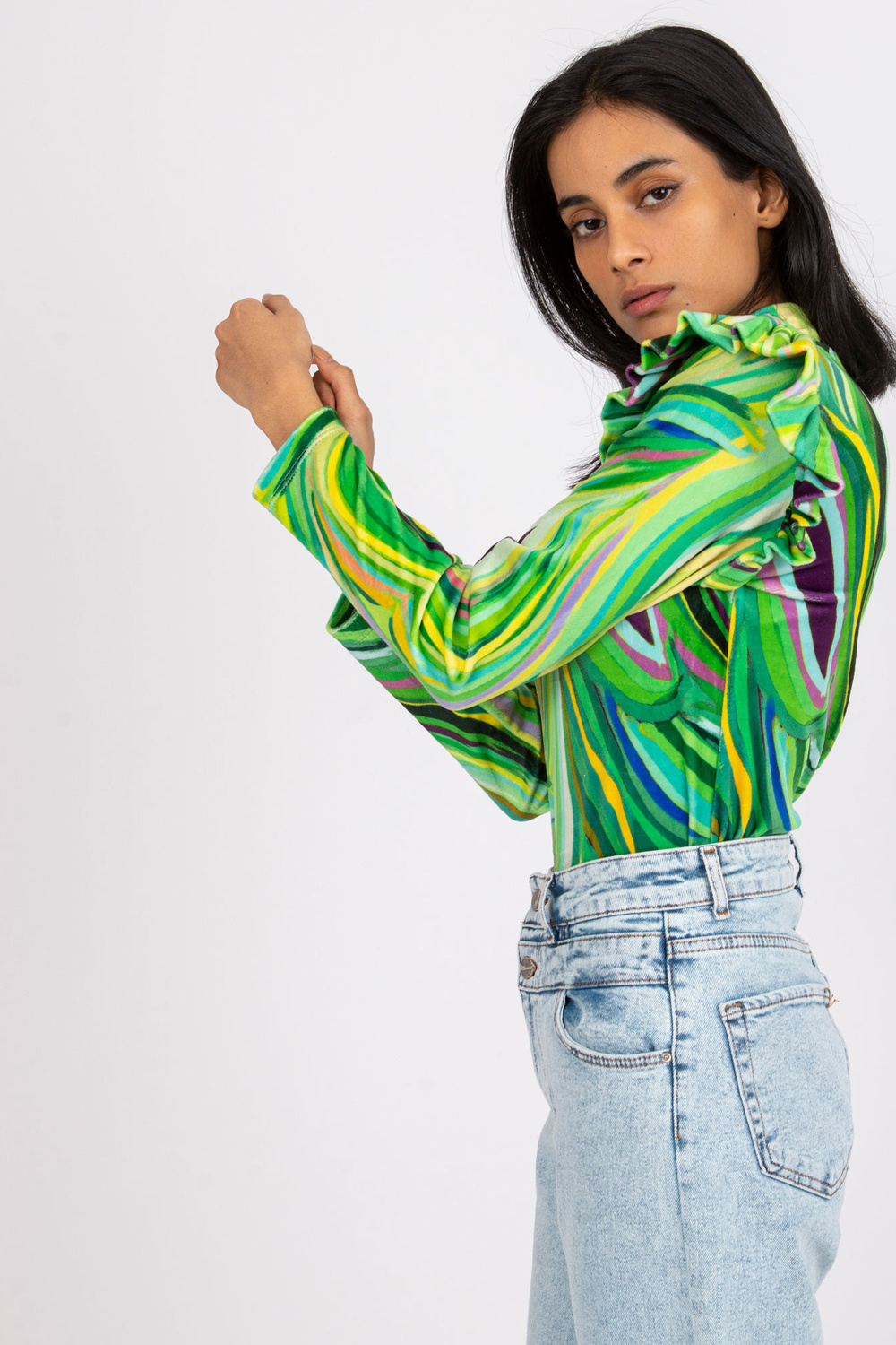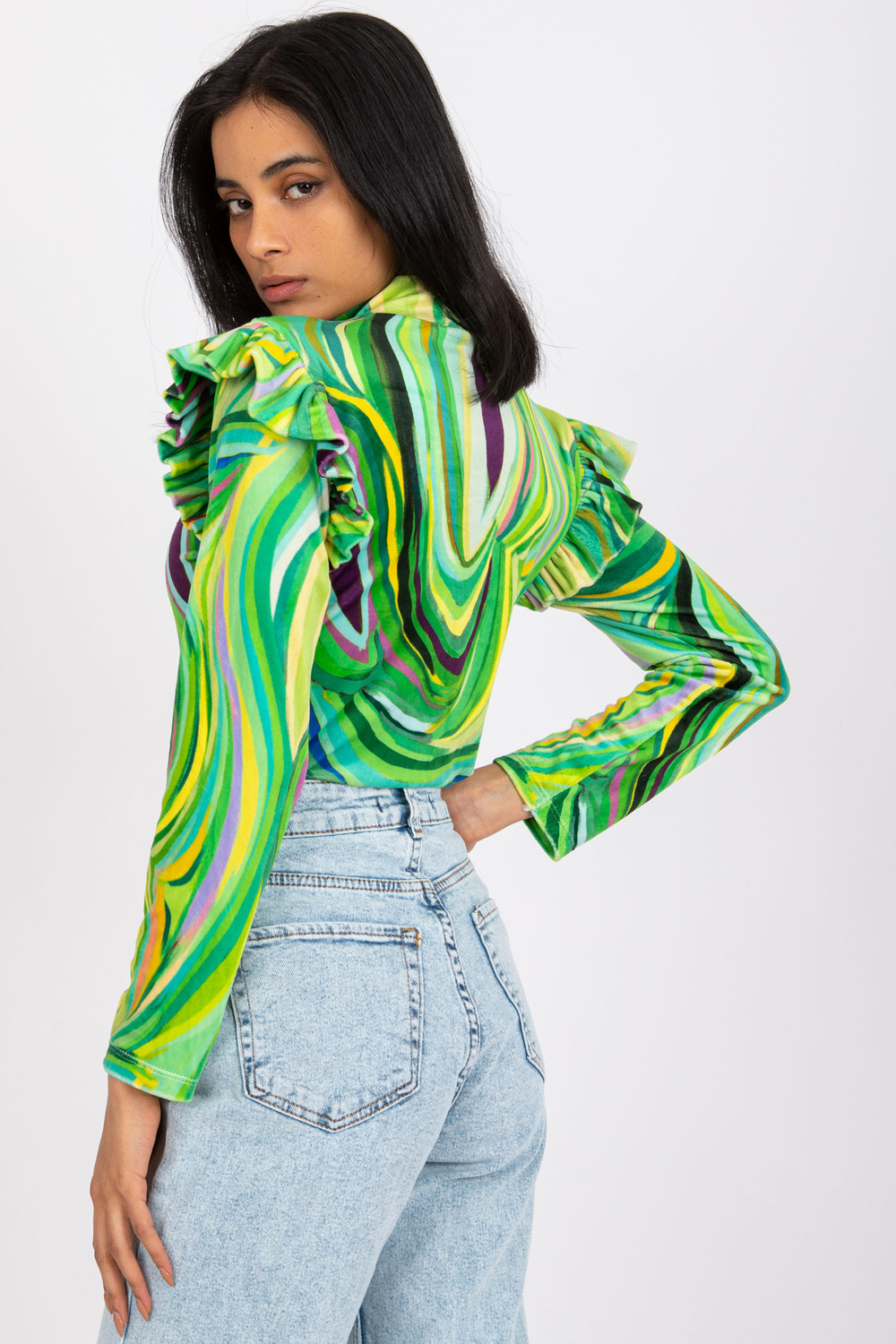 Blūzes izmēri viena izmēra izmērā, mērot plakaniski: platums zem padusēm - 45 cm, kopējais garums - 60 cm, piedurkņu garums - 57 cm.